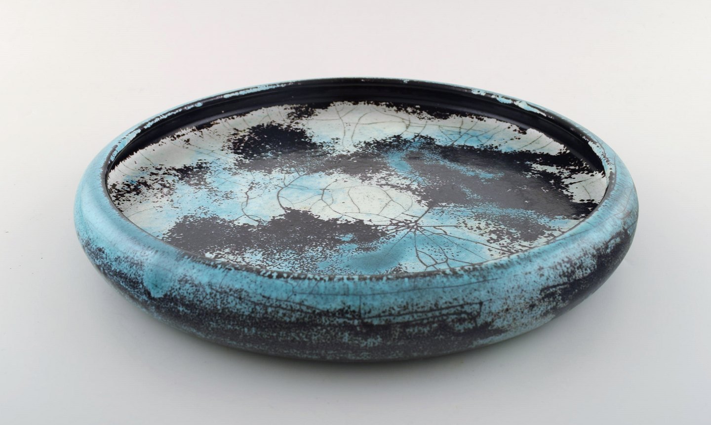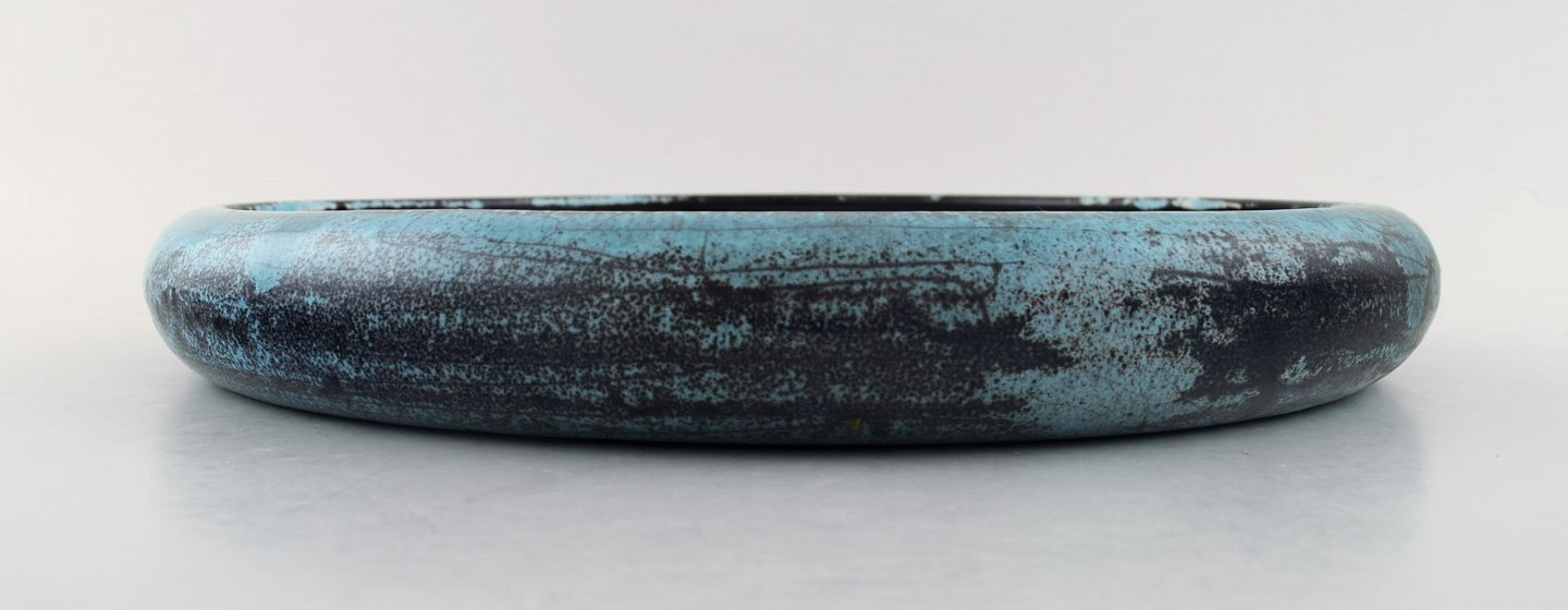 Kähler, HAK, glazed dish, 1930s. Designed by Svend Hammershøi. Glaze in green / black. Measures 28.5 x 4 cm. Stamped. In perfect condition.