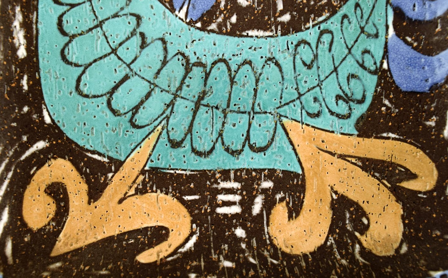 Mari Simmulson for Upsala-Ekeby keramik fad. Farverig fugl.