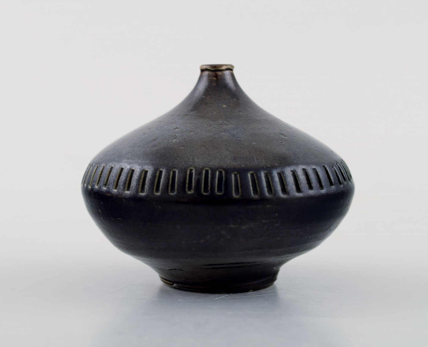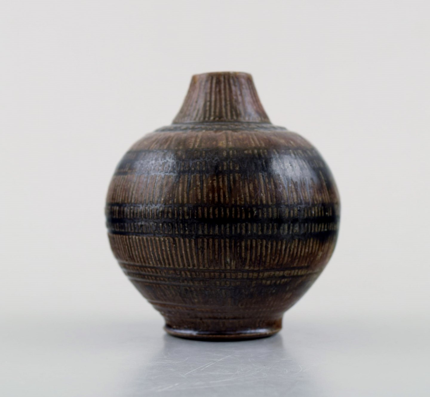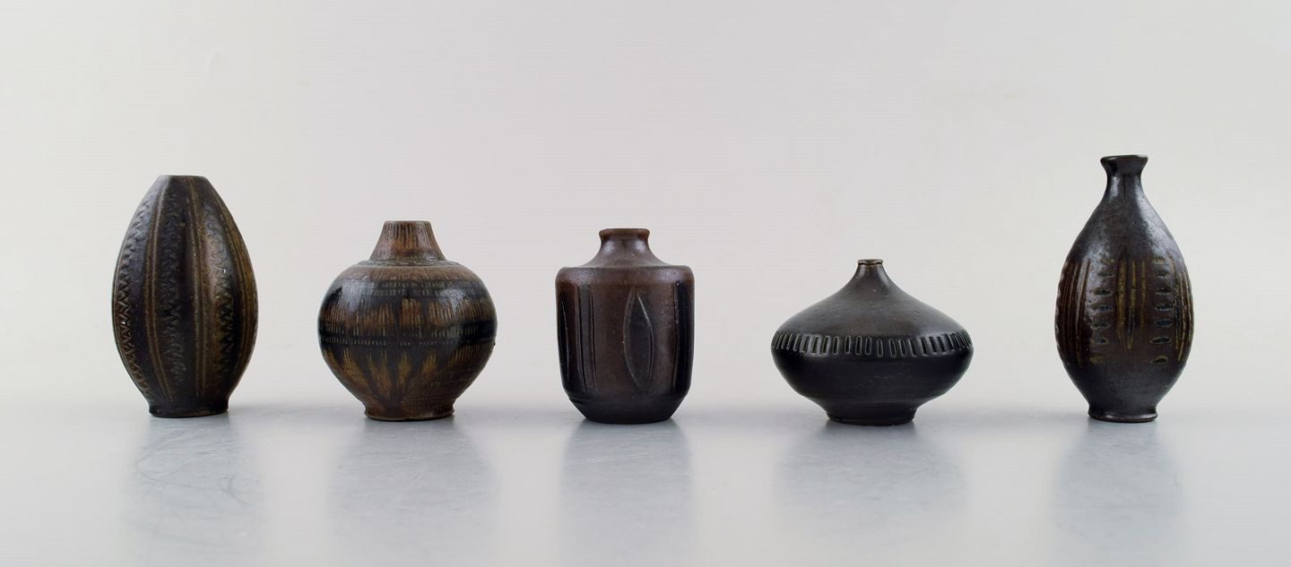Wallakra (Sweden) five miniature art pottery vases. Sweden, 1950s.