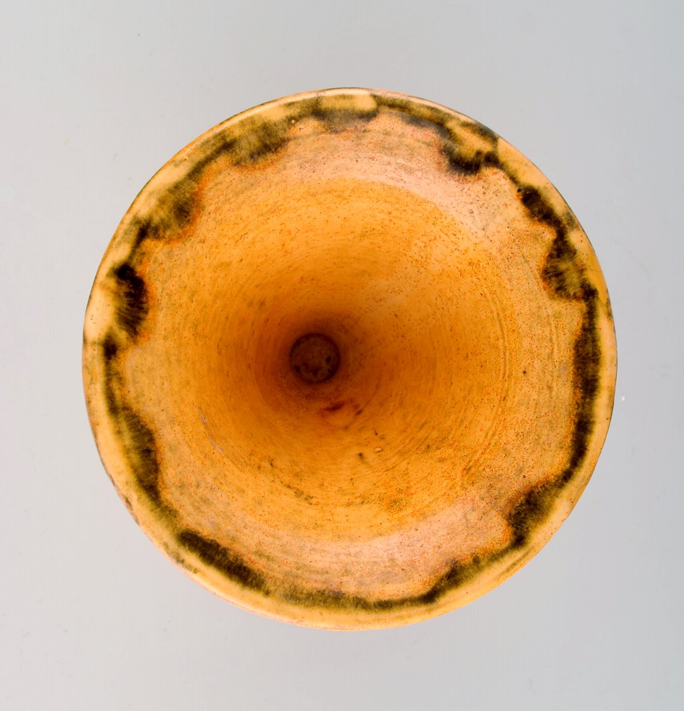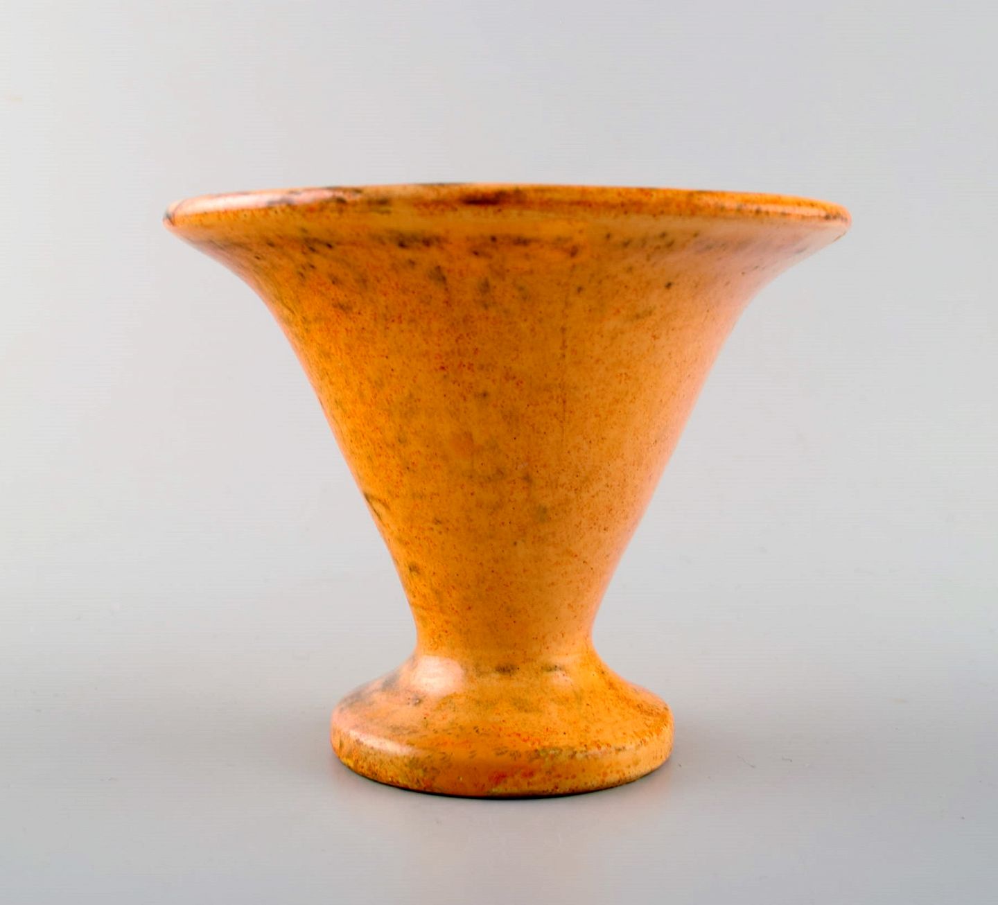 Svend Hammershøi for Kähler, HAK, glaseret stentøjsvase. I perfekt stand. Flot urangul glasur. Stemplet. Måler 12 cm. x 10 cm.