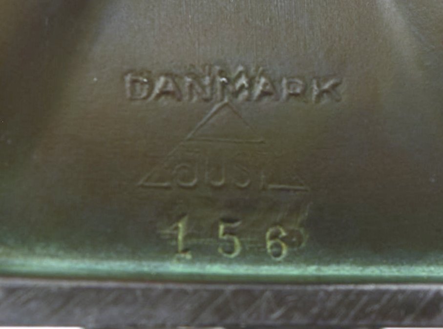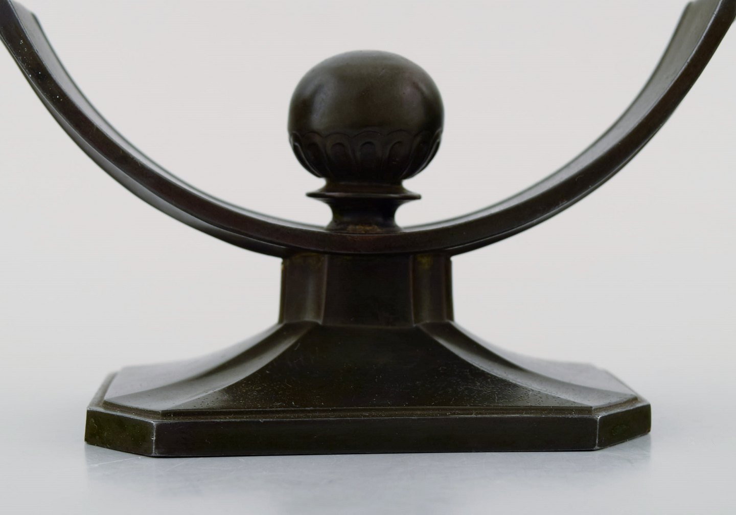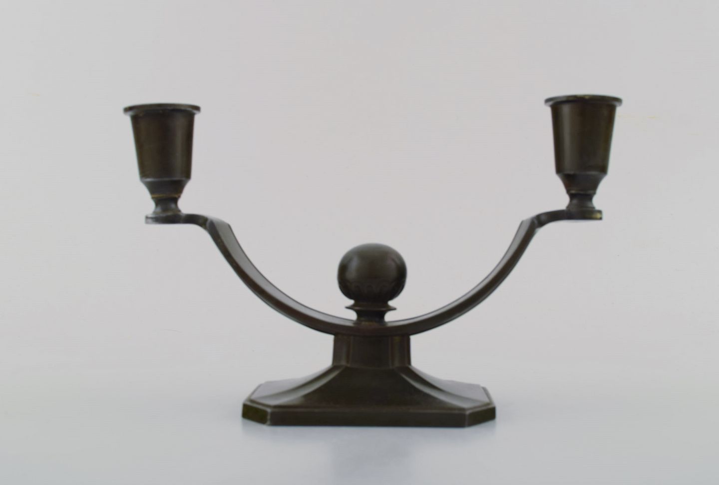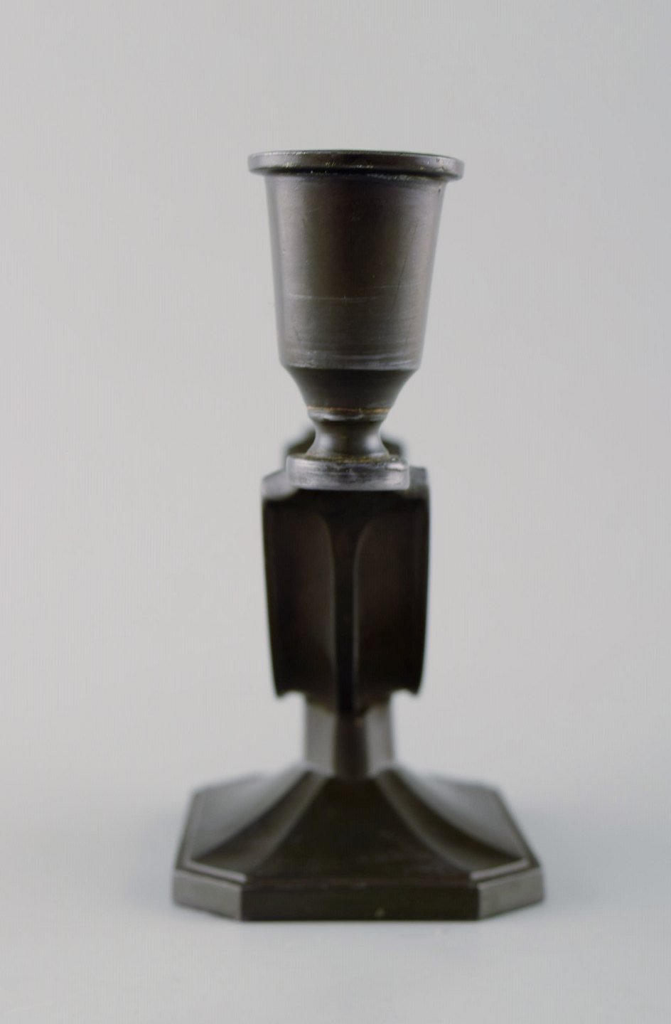 Just Andersen art deco "disko" metal candlestick. Stamped 156. In good condition with fine patina. Measures 19 cm. x 12 cm.