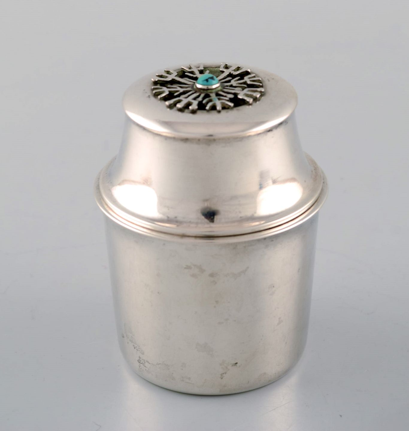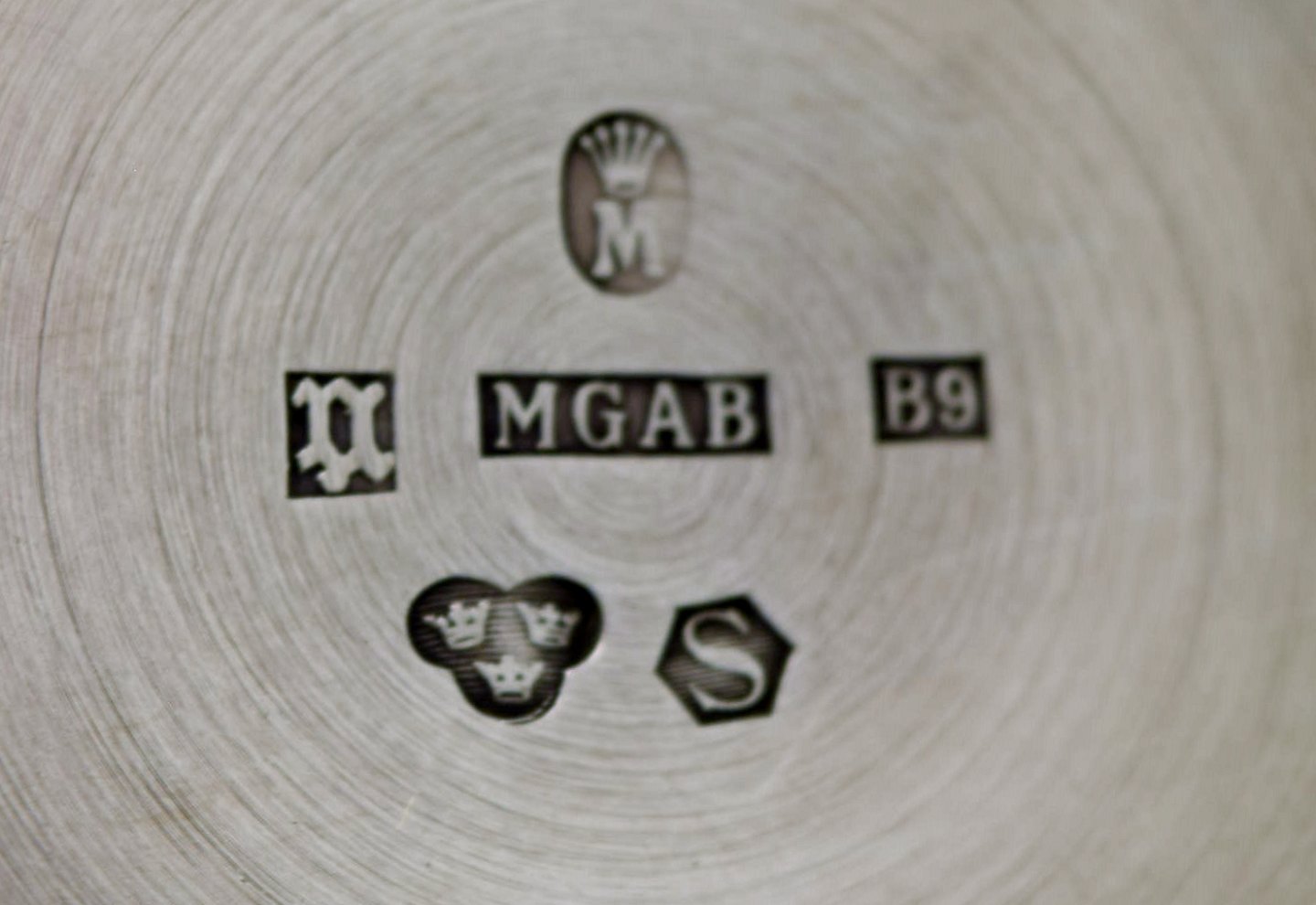MGAB. Svensk modernistisk lågdåse i sølv, 1952. Måler: 8,5 cm x 6 cm. Stemplet B9: 1952. I flot stand.