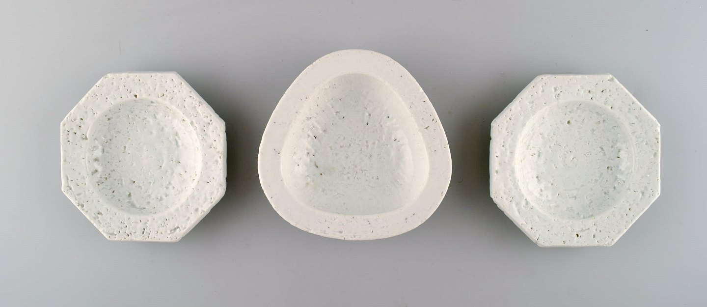 Rörstrand Gunnar Nylund 3 små Chamotte skåle. Måler 15 cm. x 4 cm. (største) Hvid glasur. Stemplet. I perfekt stand.