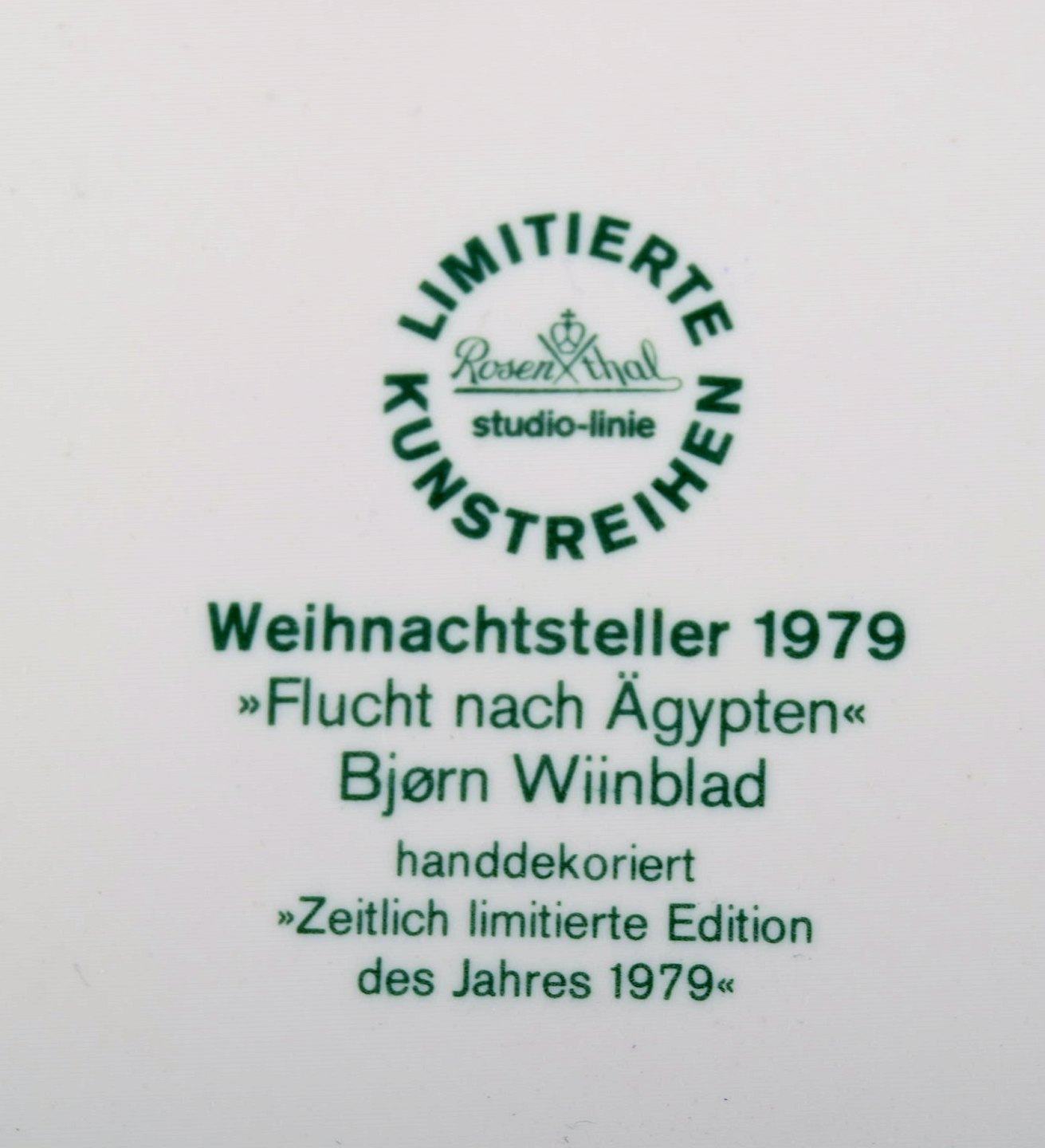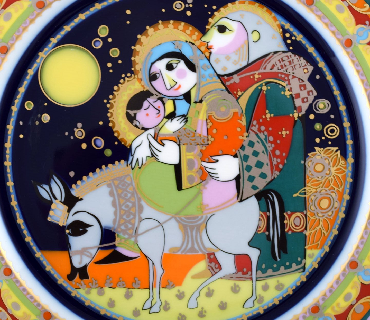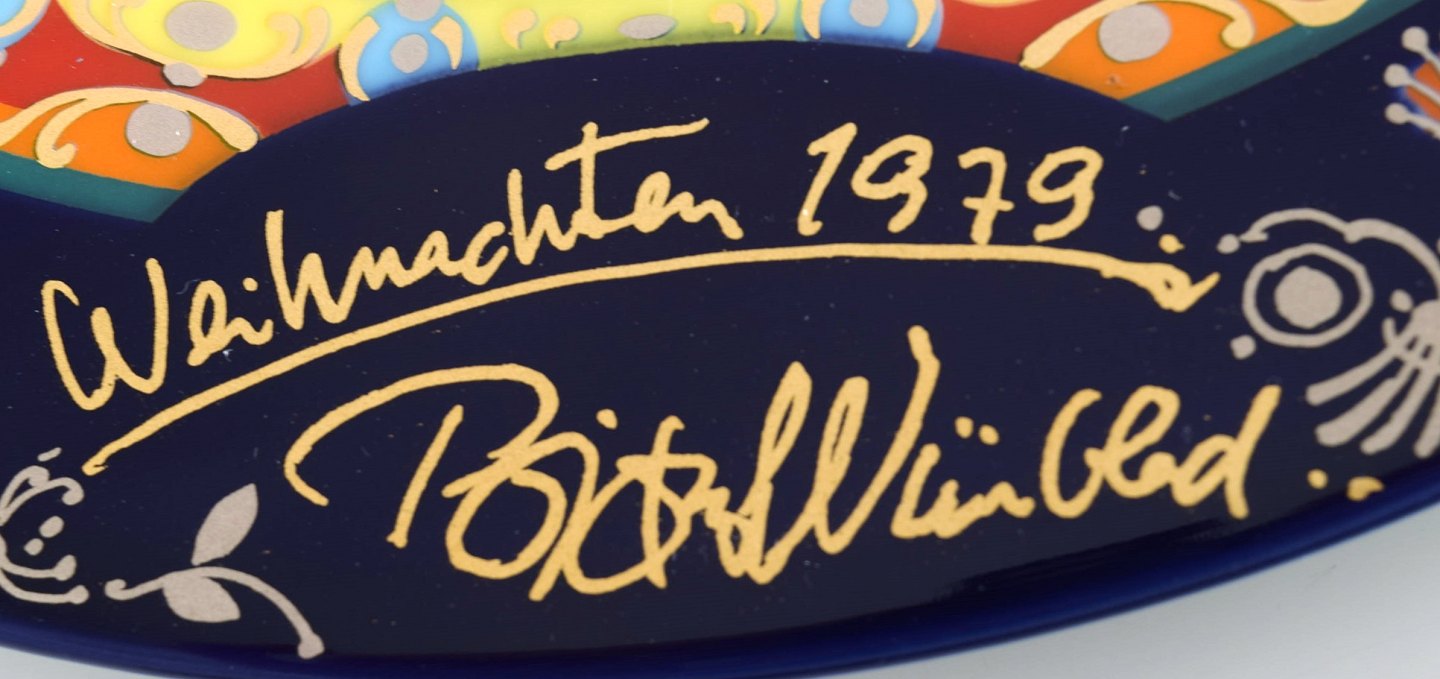 Rare hand painted Rosenthal Bjørn Wiinblad Christmas plate from 1979. "The flight to Egypt". Stamped. 29 cm. in diameter. In perfect condition.