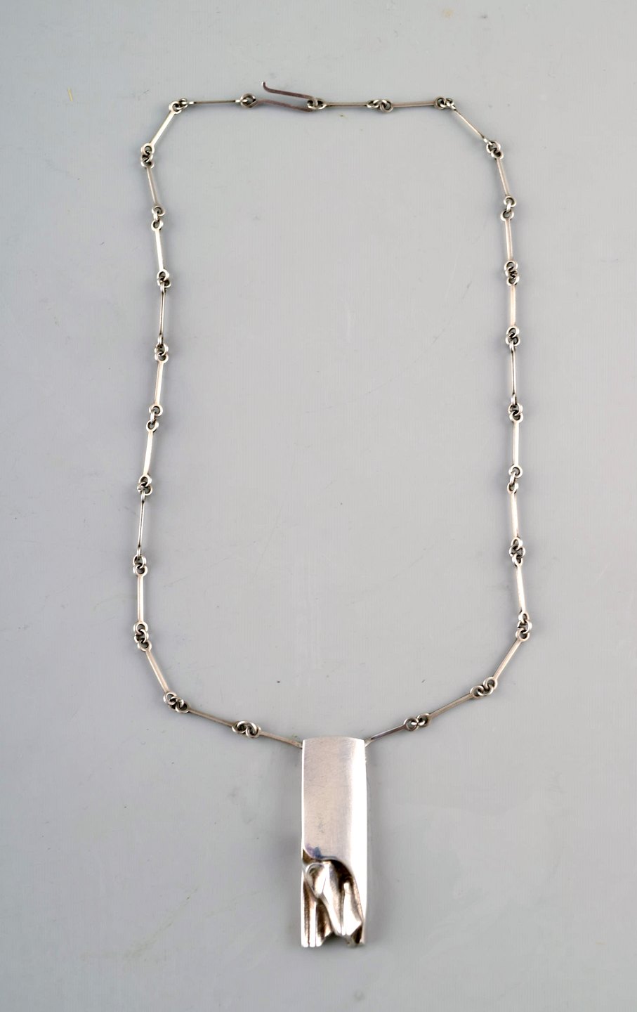 Lapponia. Necklace with pendant in sterling silver, organic shape. 1984. Measures: Chain: 41 cm. Pendant: 4.2 cm x 1.4 cm. Stamped: Lapponia, 925, G8: 1984. In very good condition.