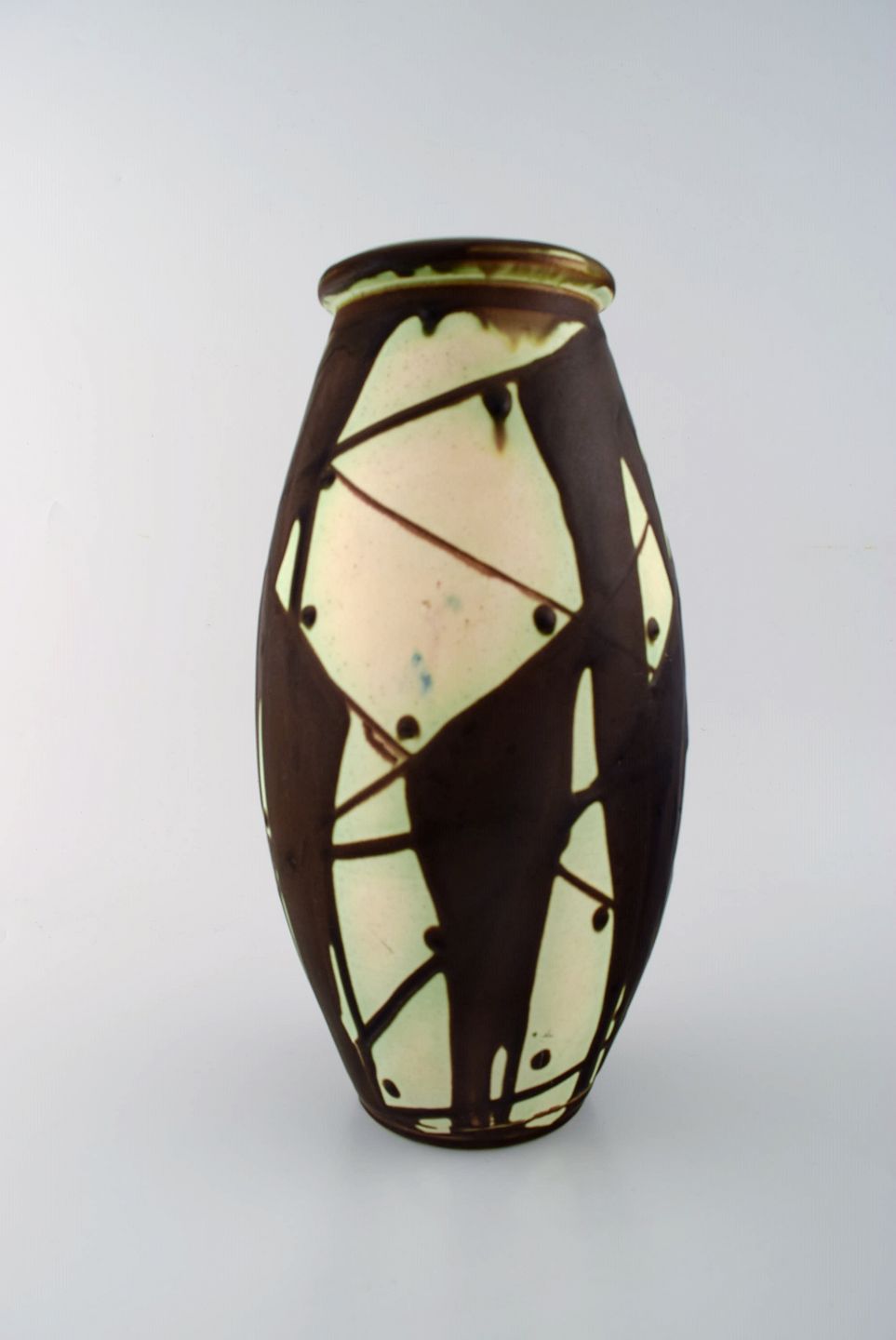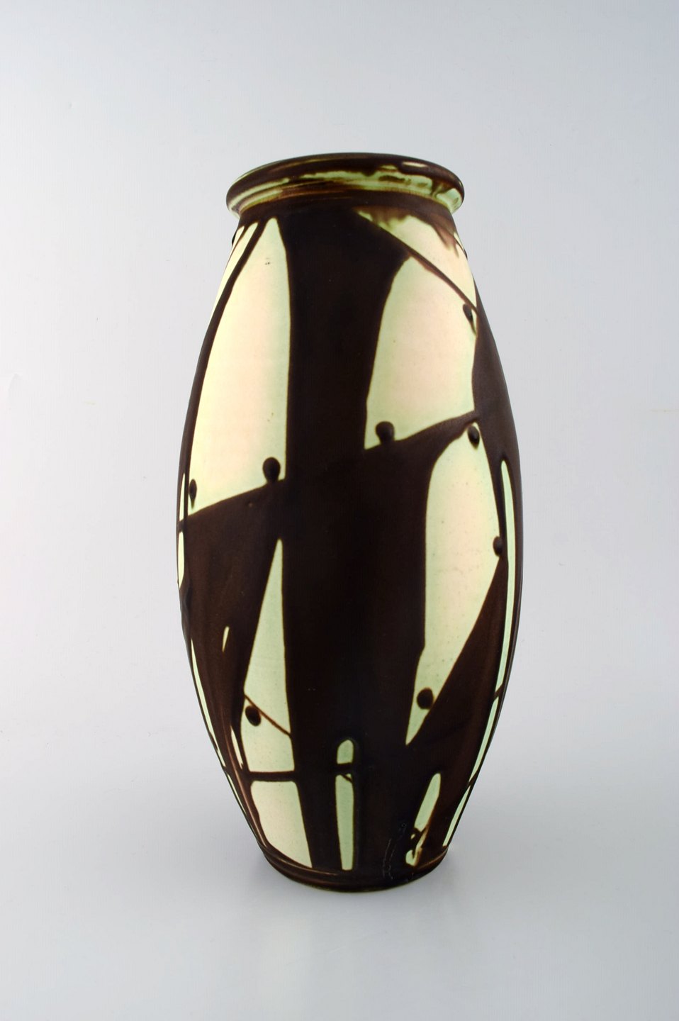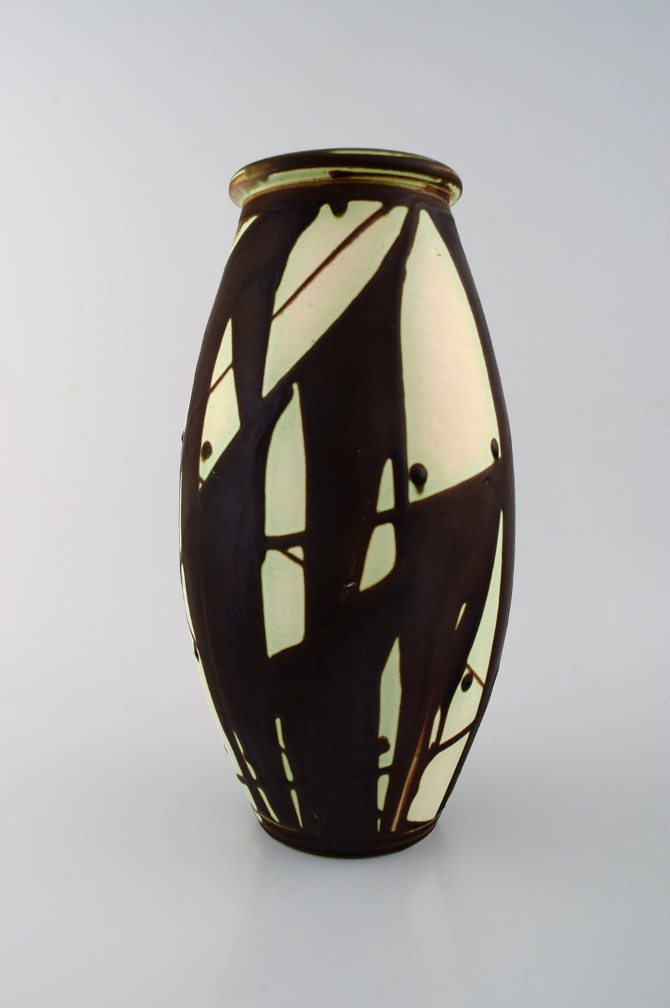 Kähler, HAK, glaseret stentøjsvase i moderne design. 1930/40´erne. Stemplet. Måler : 31,5 cm x 16 cm. I perfekt stand.