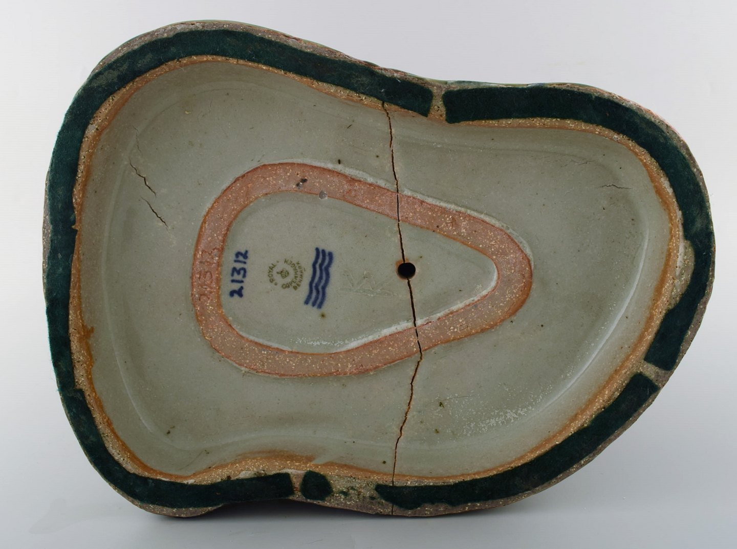 I flot stand, fremstår med revne i bunden fra produktionen.