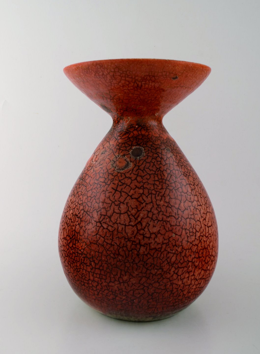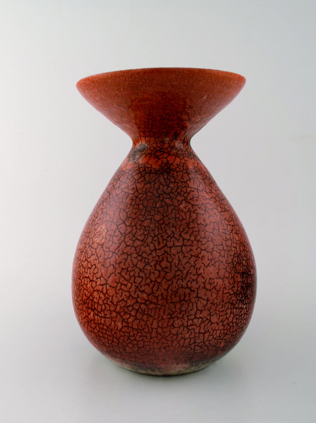 Accolay, Fransk keramikvase. Smuk rødlig krakeleret glasur. Stemplet. 1950/60´erne. Smuk krakeleret glasur i røde nuancer. Måler 26,5 cm. x 20 cm. I perfekt stand.