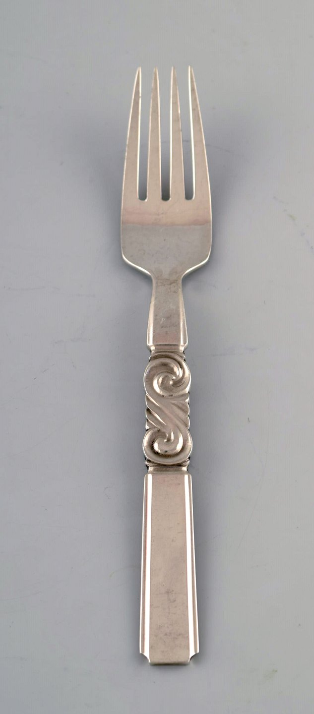 Georg Jensen. Cutlery, Scroll no. 22, hammered Sterling Silver consisting of: 6 dinner forks. In perfect condition. Stamped. Measures: 18,4 cm.