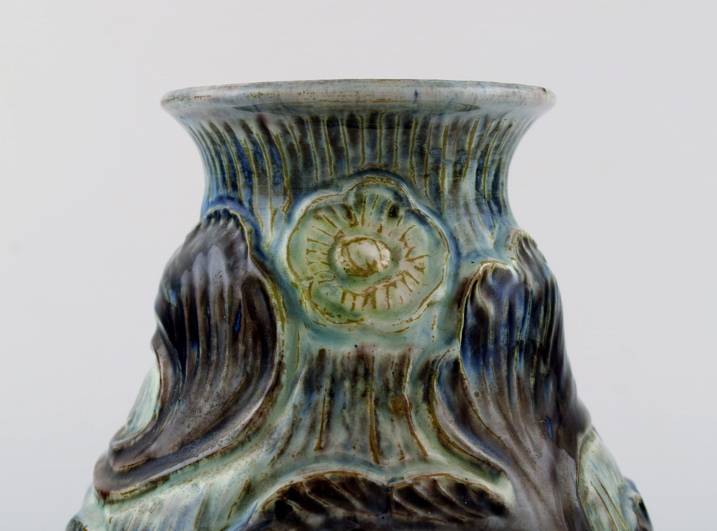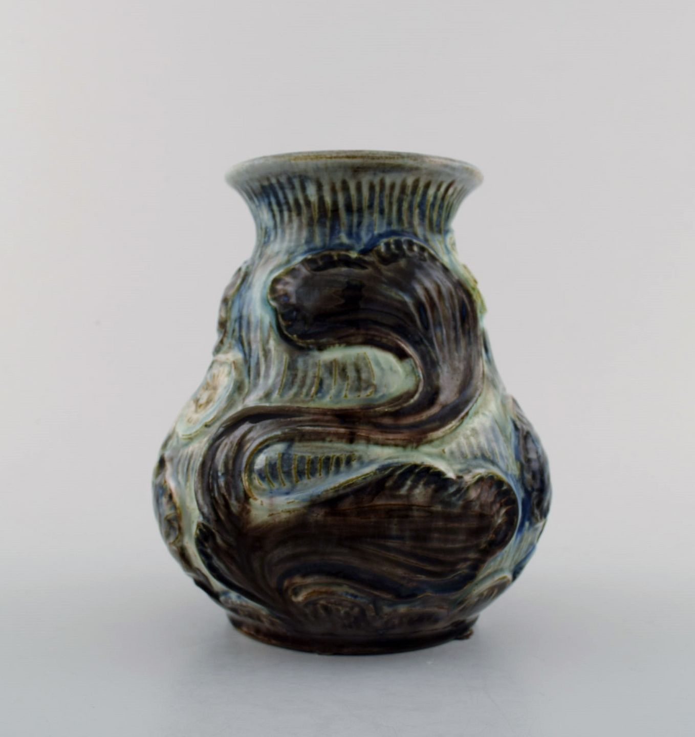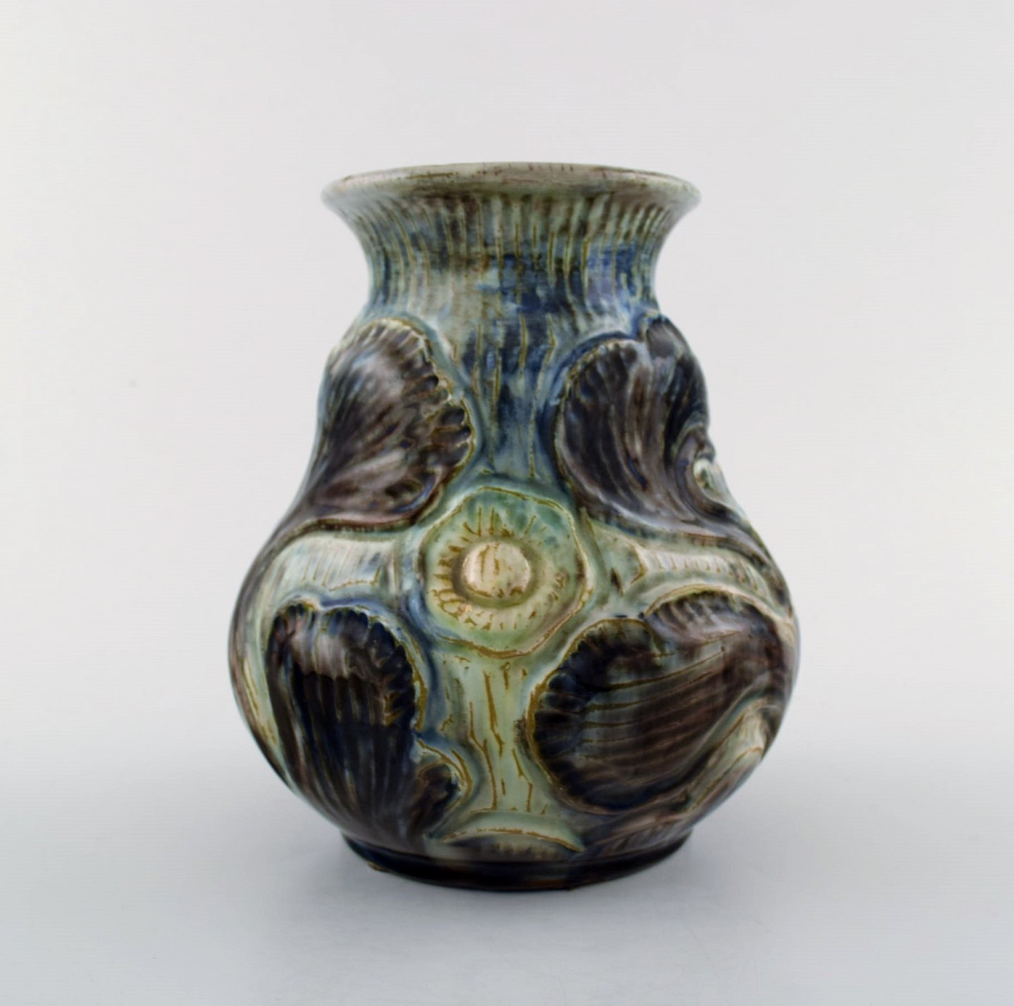 Møller & Bøgely, Art nouveau pottery vase of glazed ceramics. Ca. 1920 s. Large Danish private collection of Møller & Bøgely ceramics in stock. Measures: 16 cm. x 15 cm. Stamped.