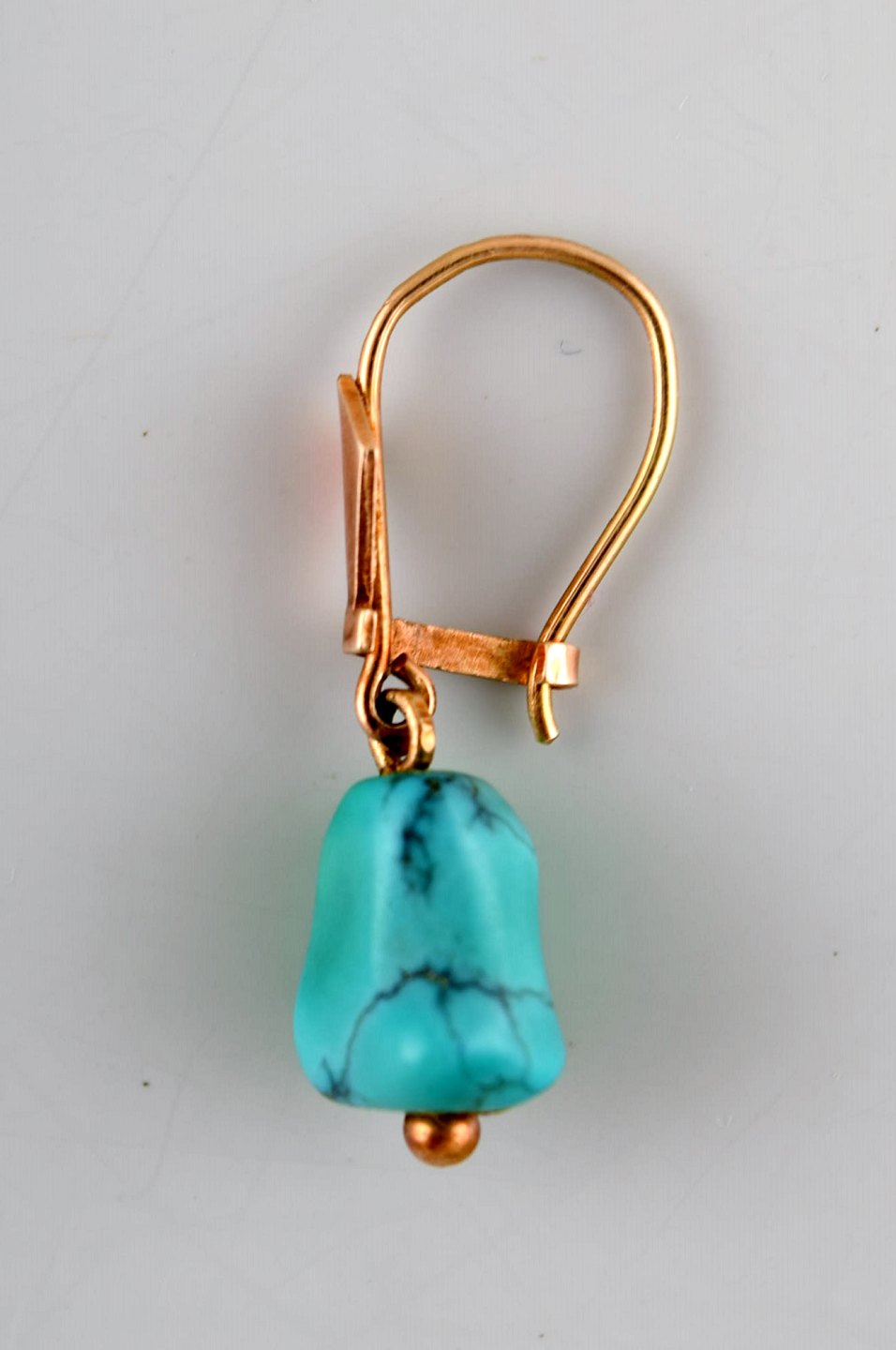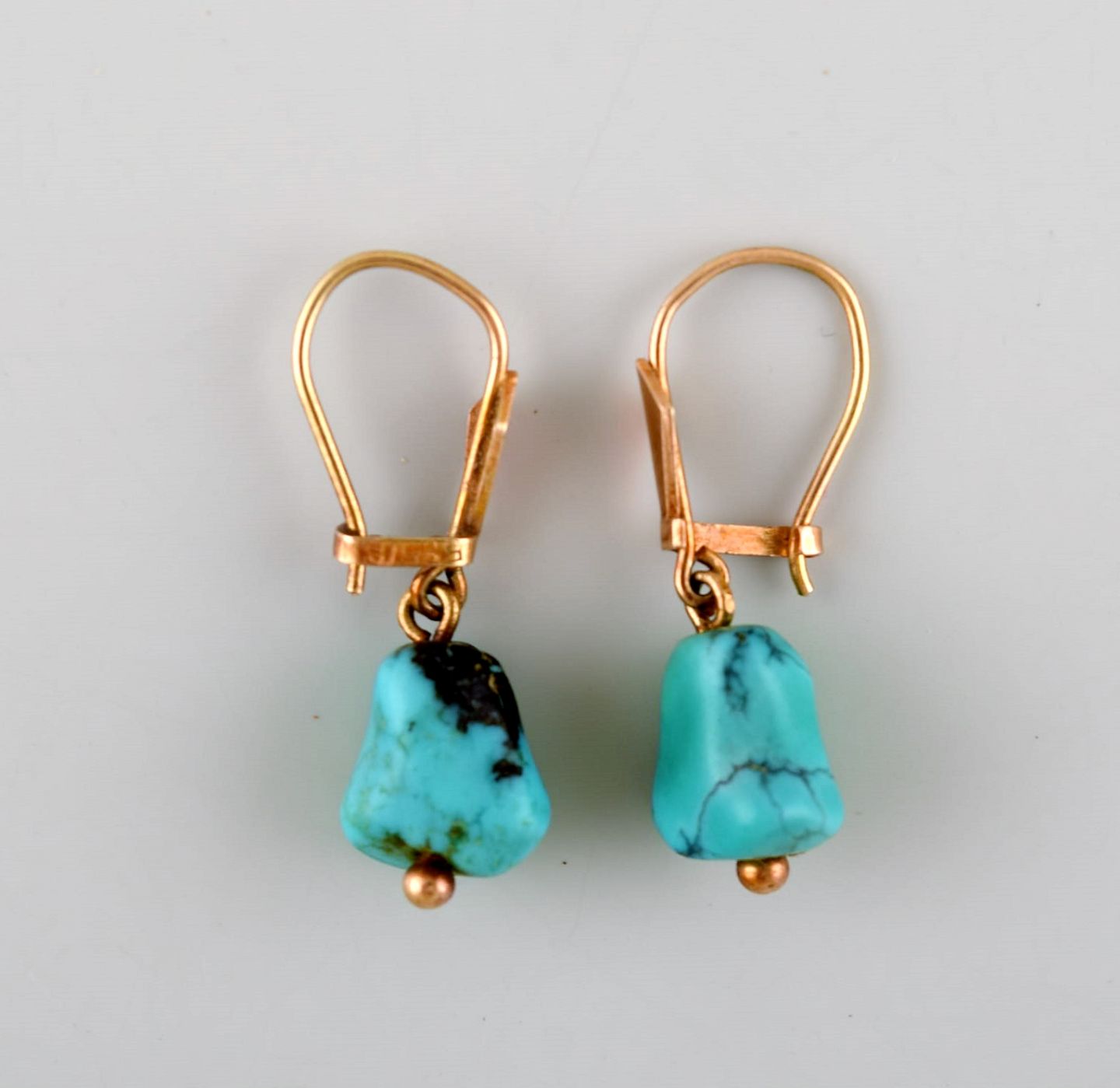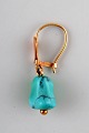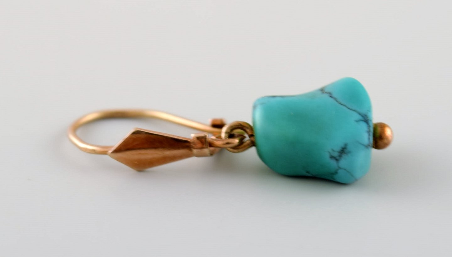 Danish 14K gold ear rings with turquoise. Mid-1900s. In very good condition. Stamped. Measures: 28 mm x 10 mm.