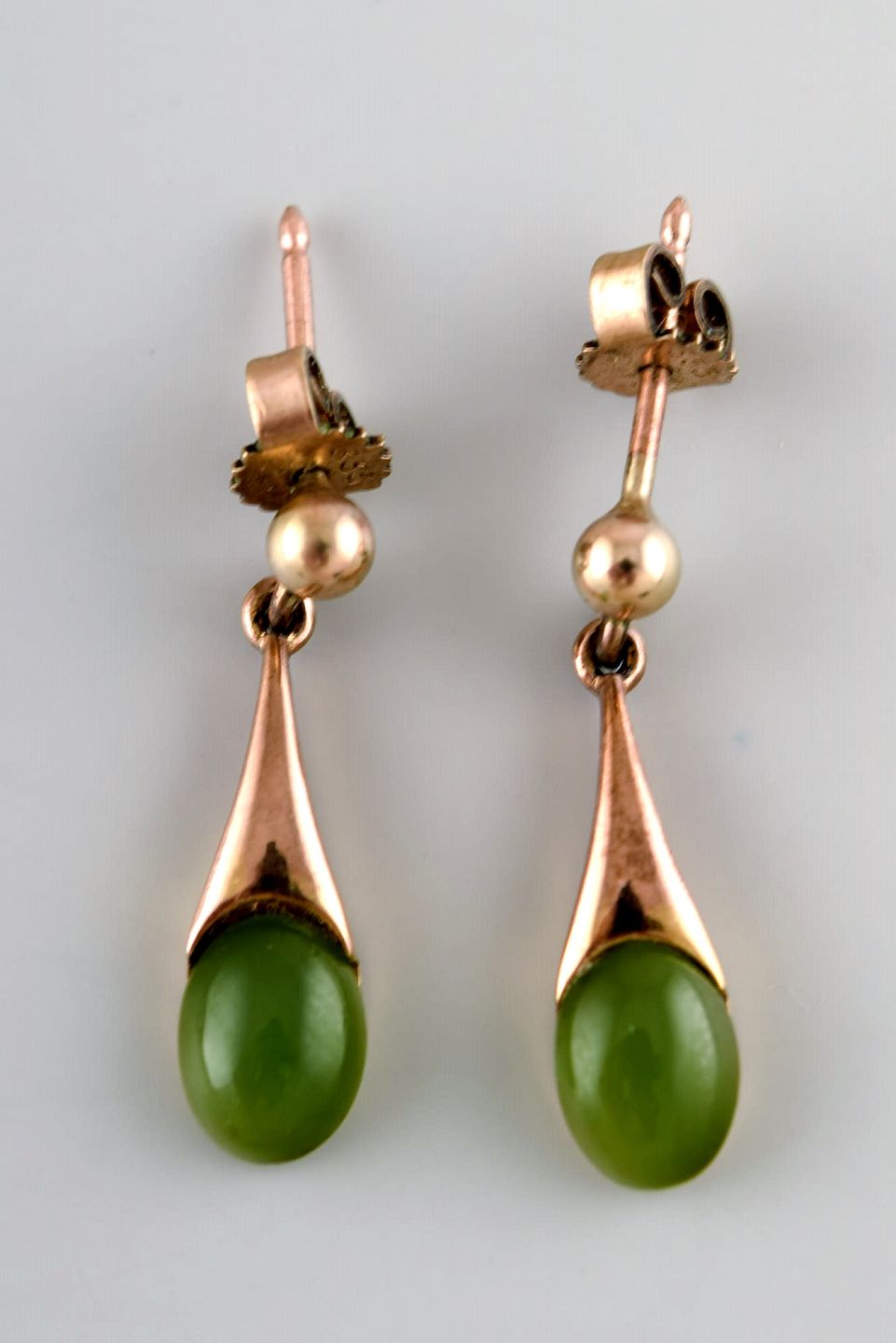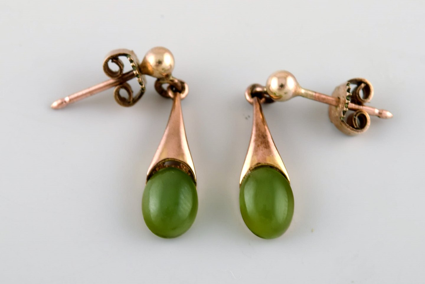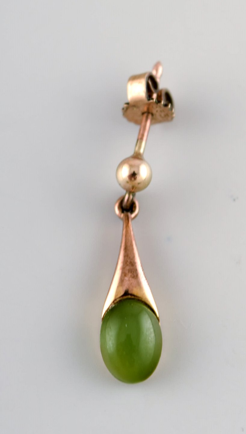 Danish 8K gold ear studs with green stones. Mid-1900s. In very good condition. Stamped. Measures: 20 mm x 6 mm.