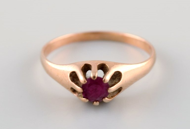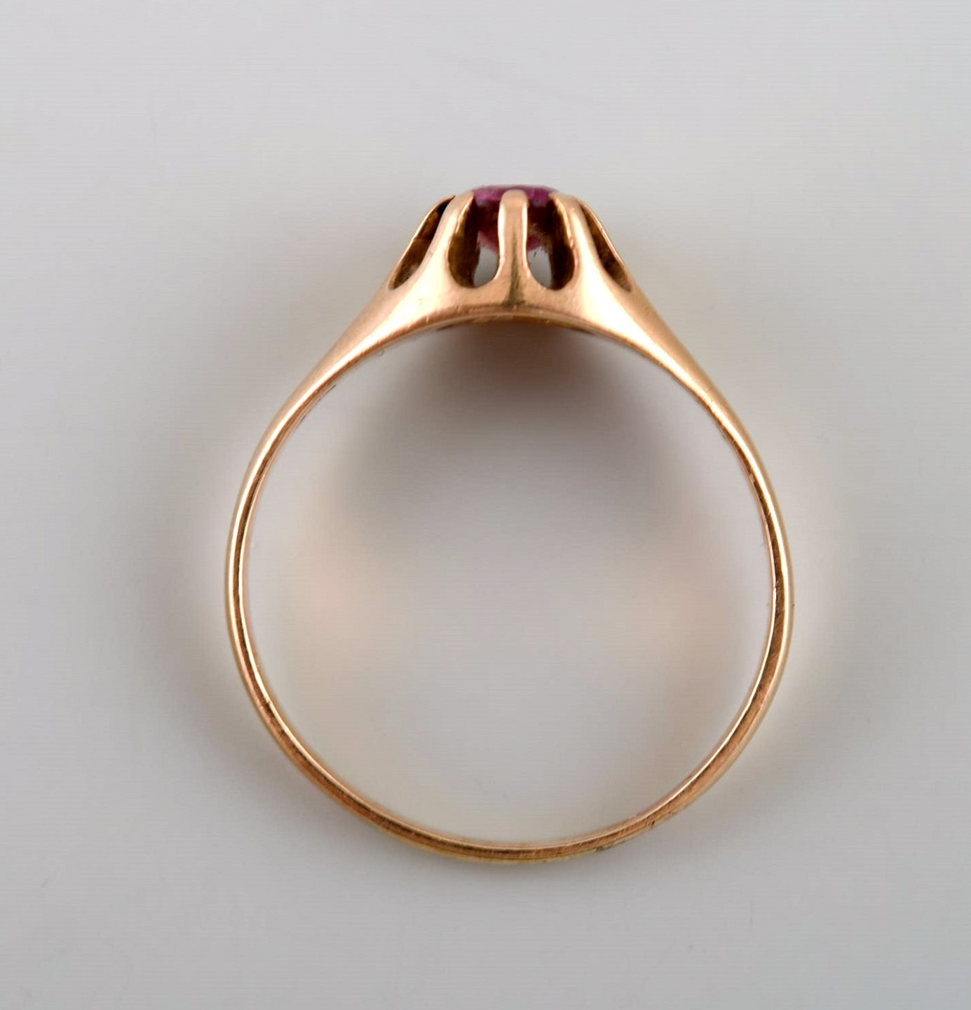 Danish 14K art deco gold ring with purple stones. In good condition. US Size: 9 Stamped. Ca. 1930 In most cases we can for a fee ($50) have the ring resized.