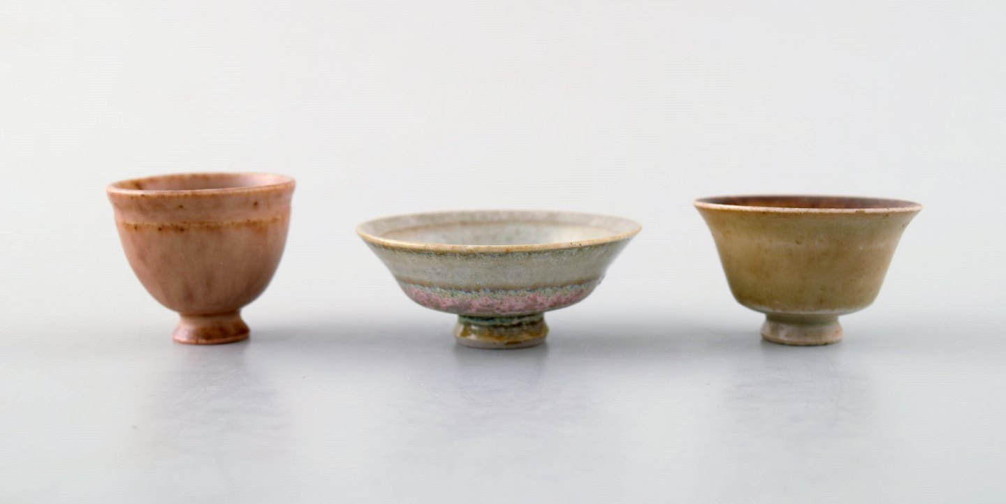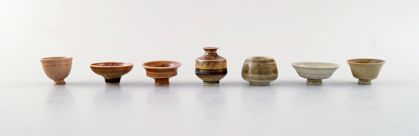 Samling Höganäs m. fl. miniature vaser, i alt 7 stk. Signeret, JA (John Andersson) m.fl. I perfekt stand. Højeste 4 cm.