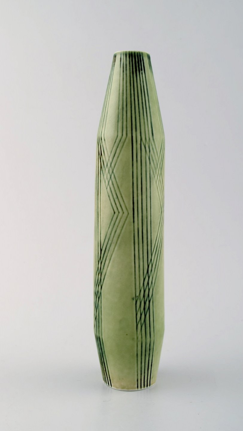 Carl-Harry Stalhane for Rorstrand / Rørstrand, ceramic vase. Rare form. Measures 25 cm x 5,5 cm. In perfect condition.