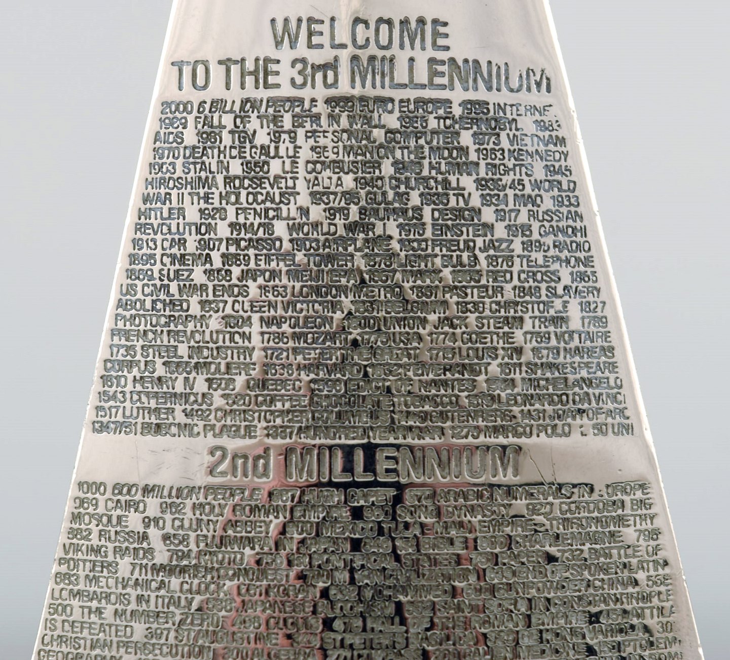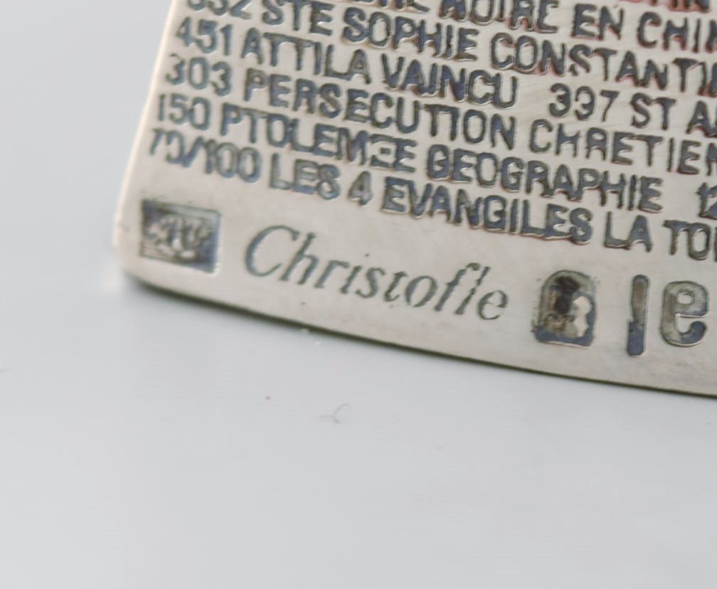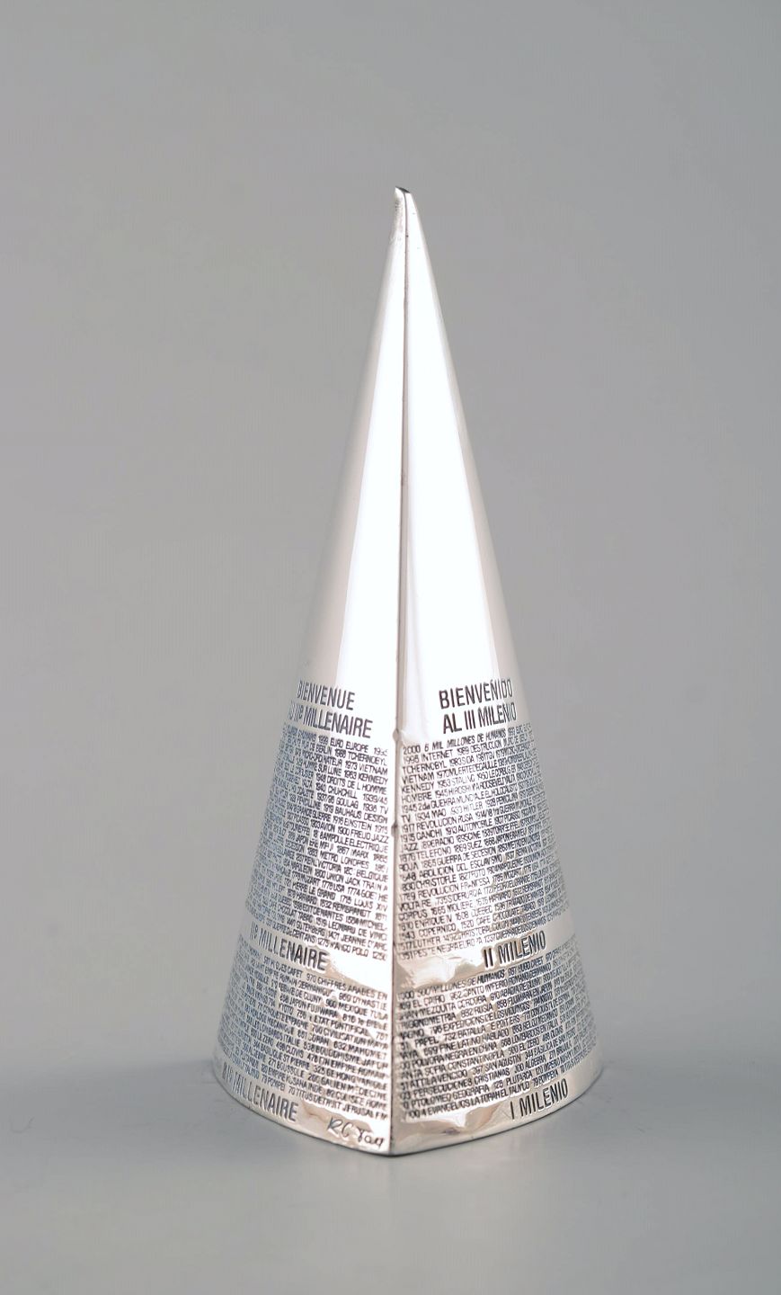 Rare Claude Picasso for Christofle. "Welcome to the 3rd Millennium". Cone-shaped sculpture / paper weight in silver plated bronze.