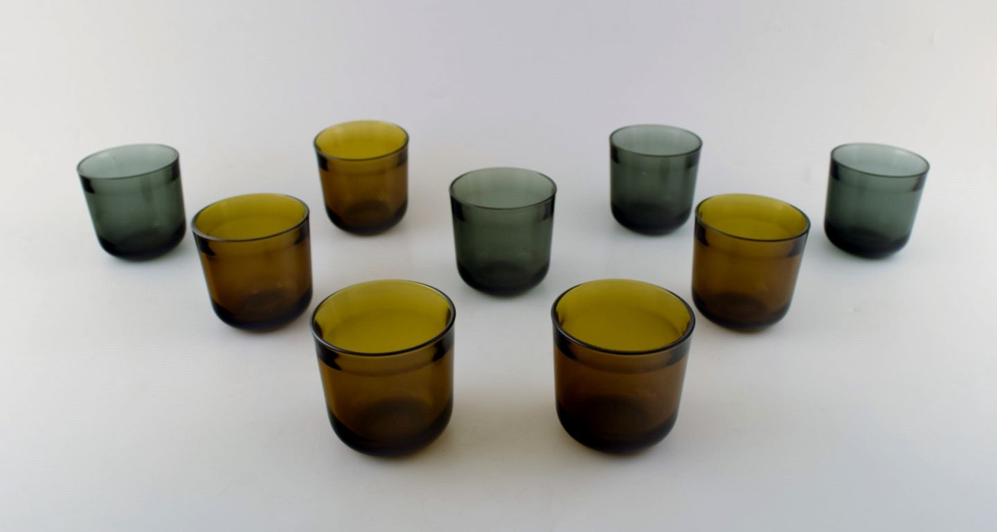 Kaj Franck (Finnish, 1911-1989) Nuutajärvi Glass Works, Finland, art glasses. 9 mouth blown drinking glasses of different colors.