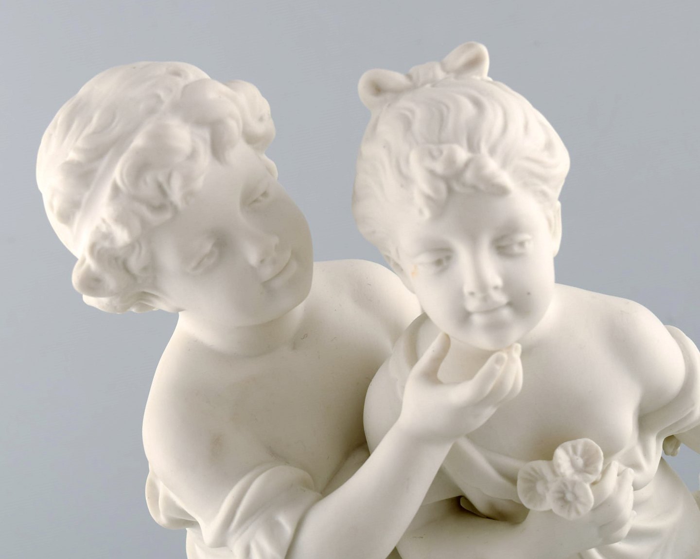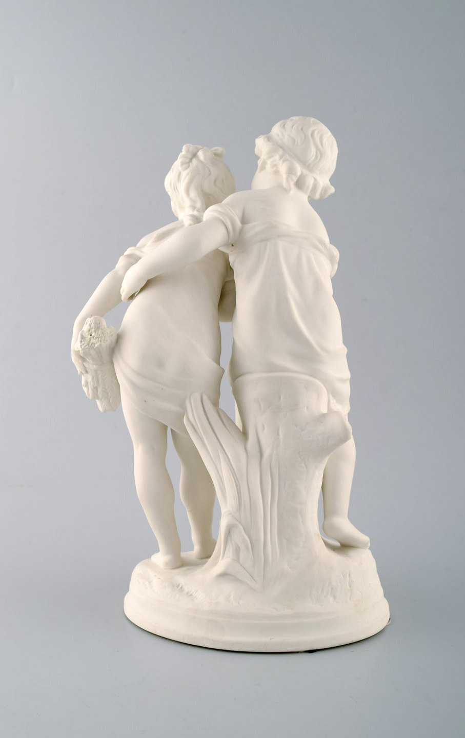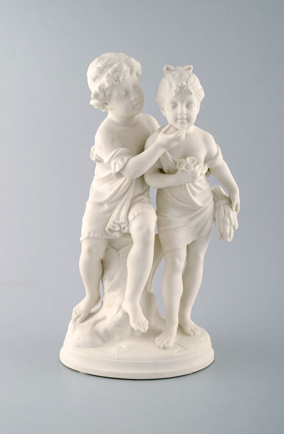 Classic sculpture in biscuit on base, Gustavsberg, dated 1910. Siblings. Measures 30.5 cm. x 20 cm. In perfect condition. Stamped. Gustafsberg, PS.