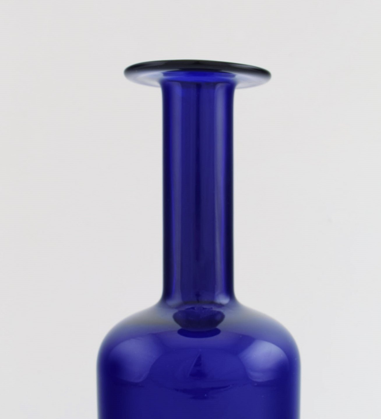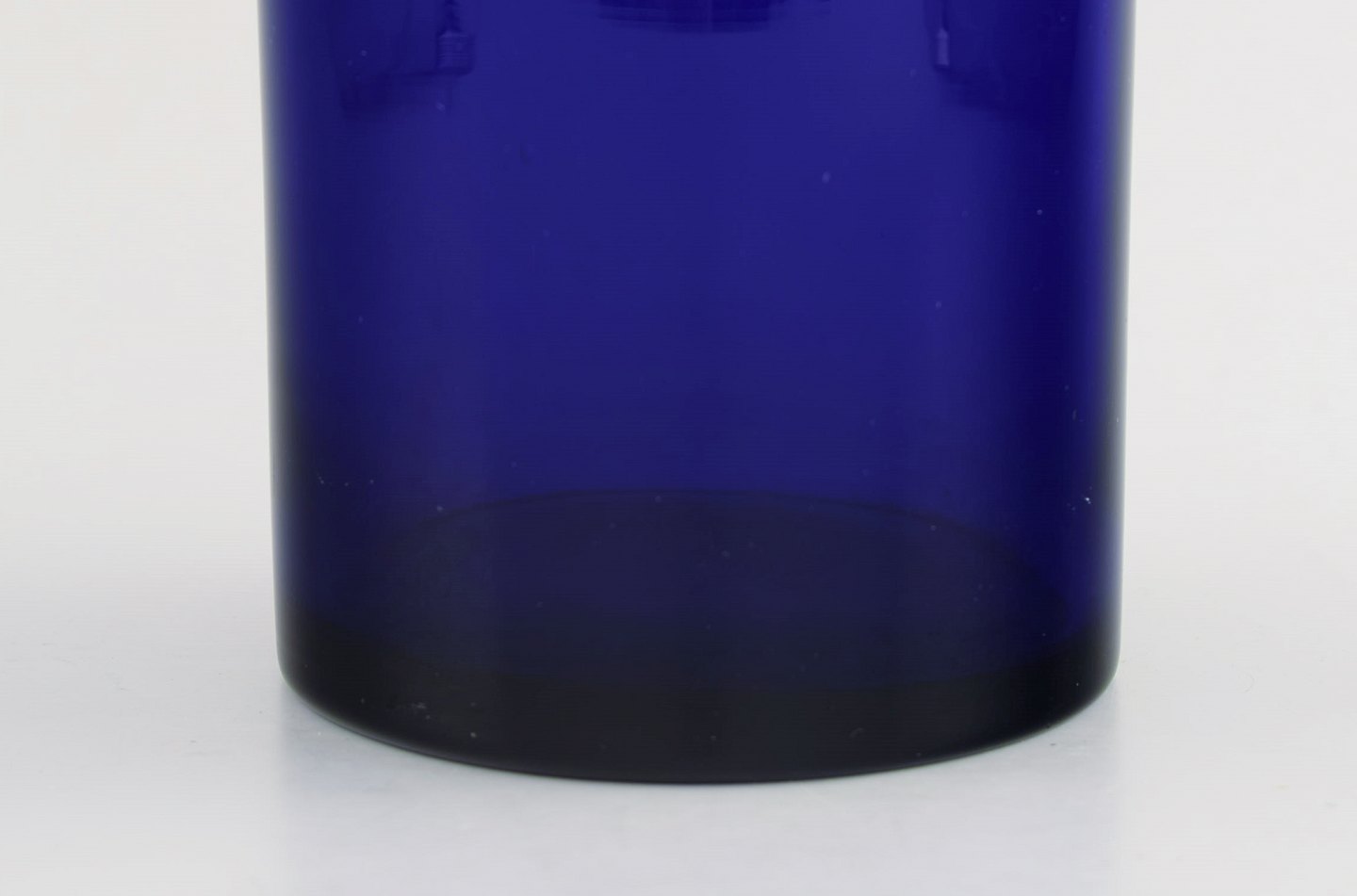 Holmegaard stor vase/flaske, Otto Brauer. Mørkeblåt kunstglas. Måler : 25,5 cm. x 10 cm. I perfekt stand.
