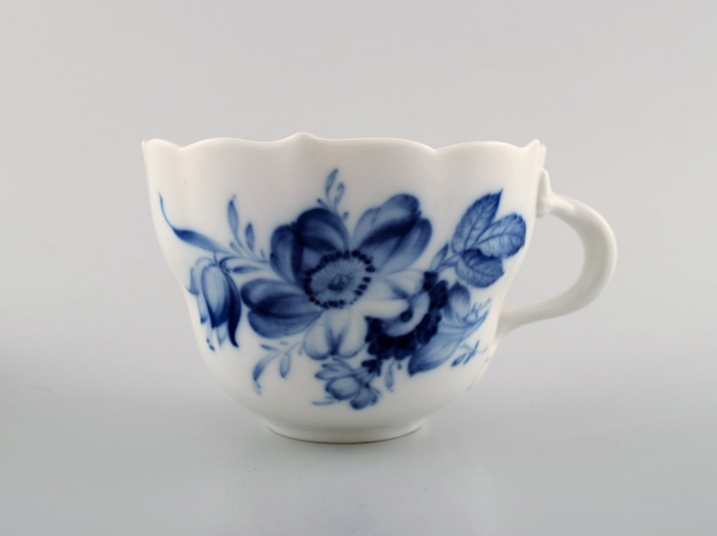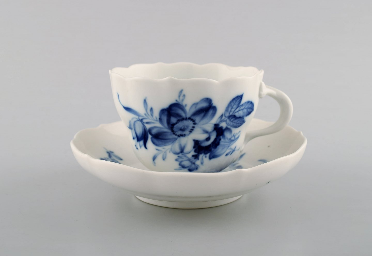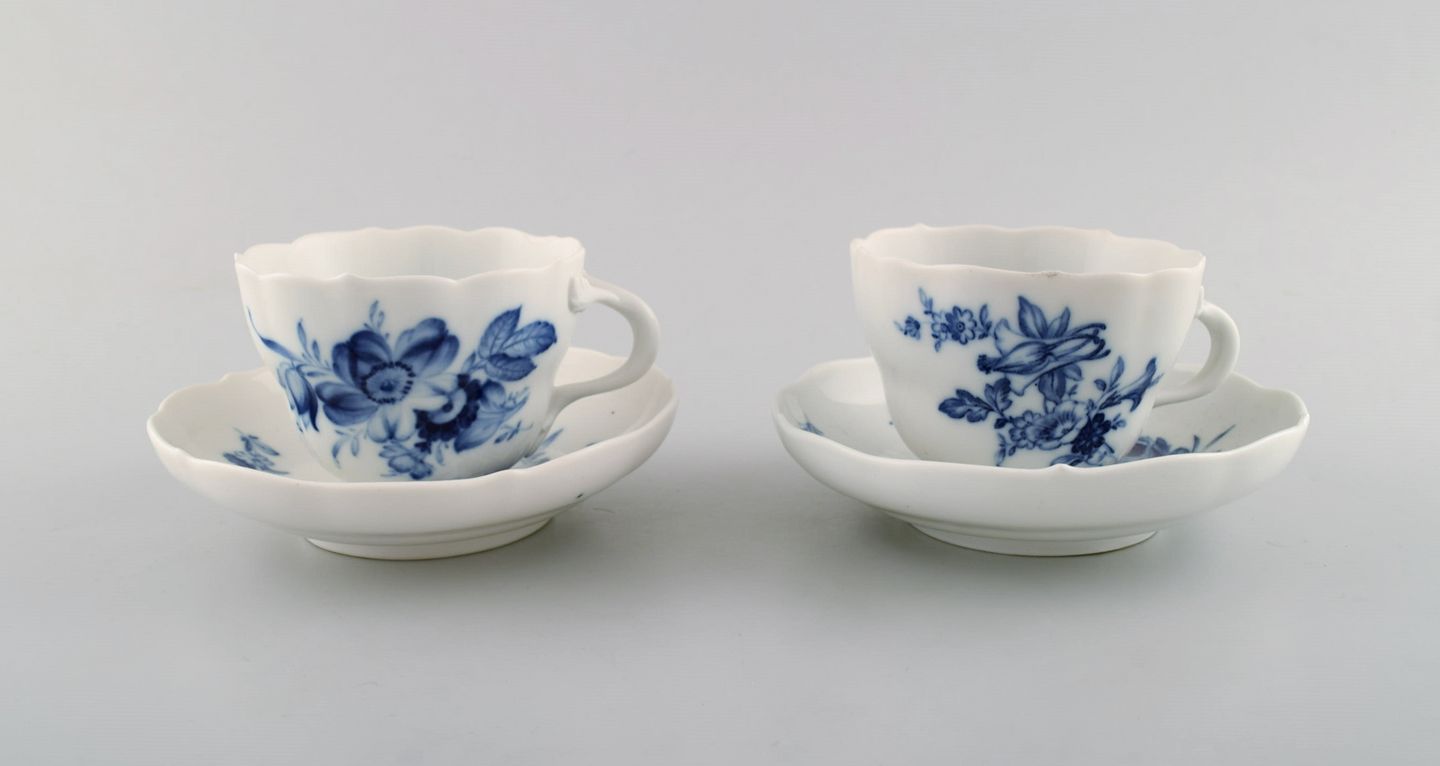 A pair of Meissen blue onion coffee cups and saucers. In perfect condition, 2nd factory quality. Cup measures: 8,5 x 6,5 cm. Saucer measures: 13,5 x 3,5 cm.