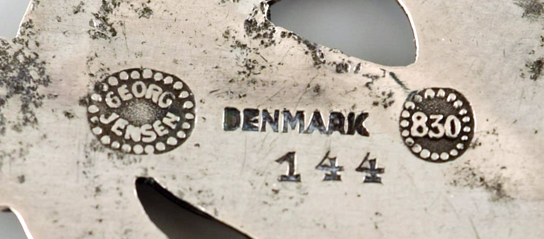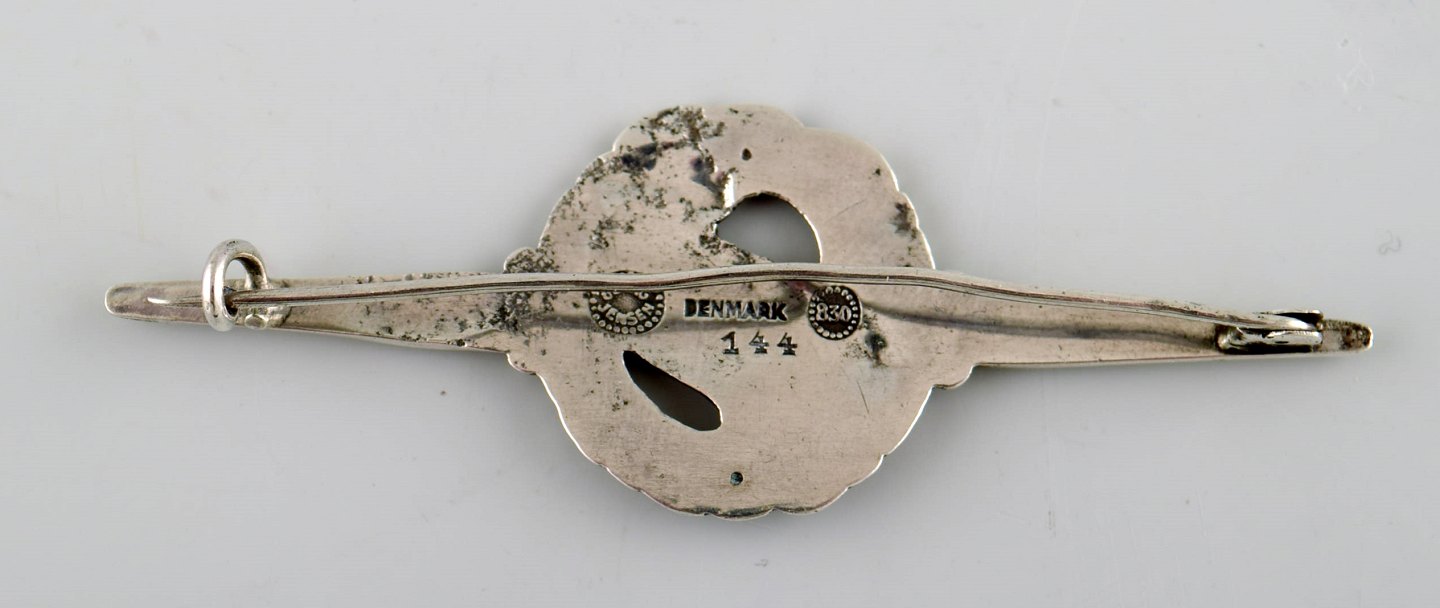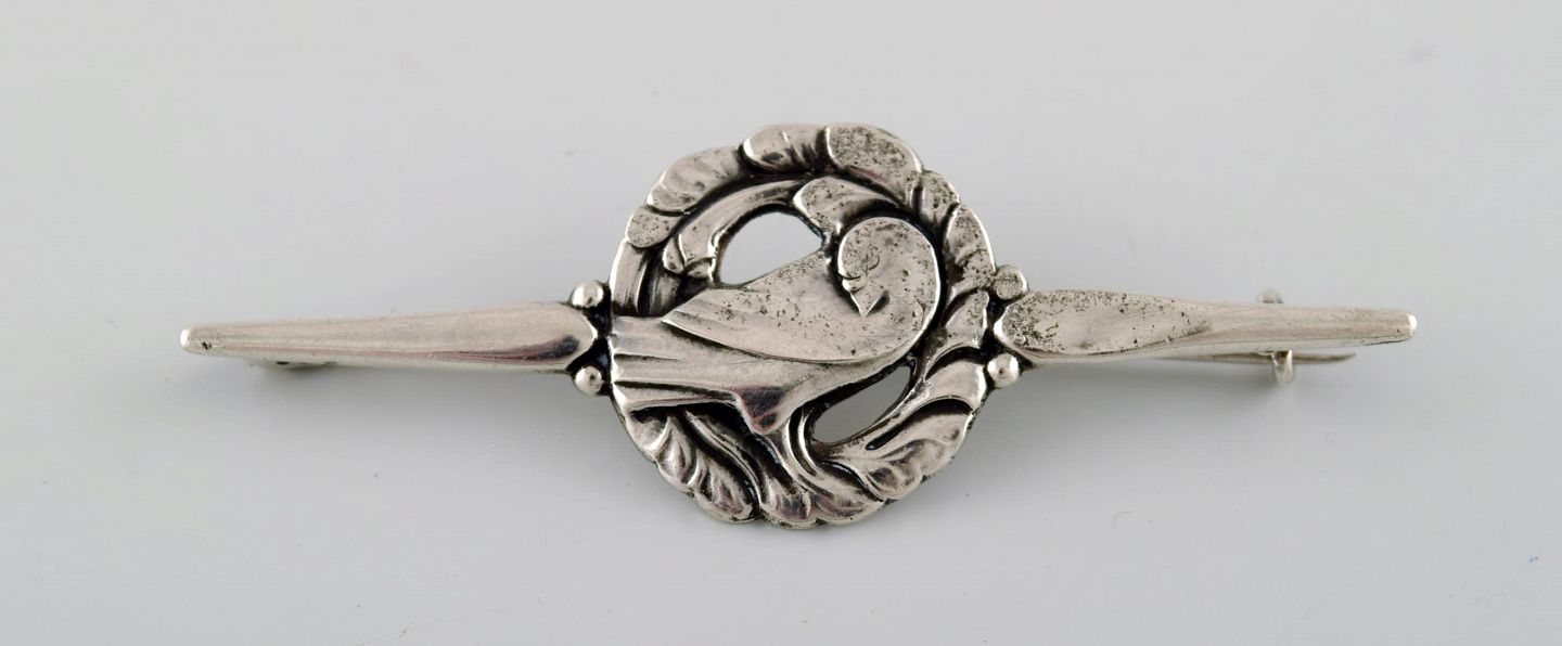 GEORG JENSEN. Broche af sølv i form af due. Modelnummer 144. 1915-1930. I flot stand. Måler: 7 x 2,5 cm. Tidligt stempel.