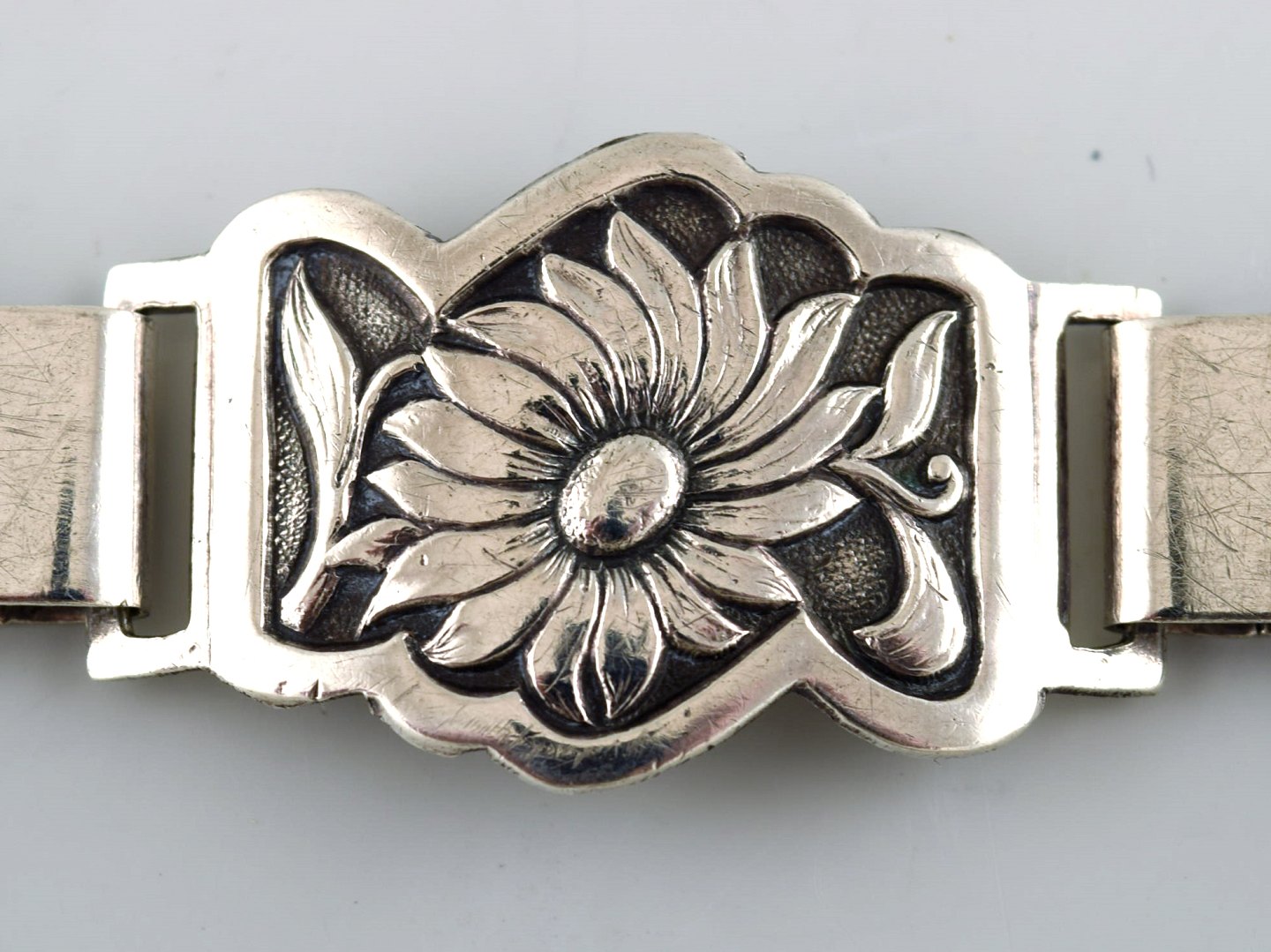 Dansk sølvsmed. Klassisk Sølvarmbånd. 1940/50'erne. I flot stand. Stemplet: 830S. Total længde: 20,5 cm. Bredde: 2,2 cm.