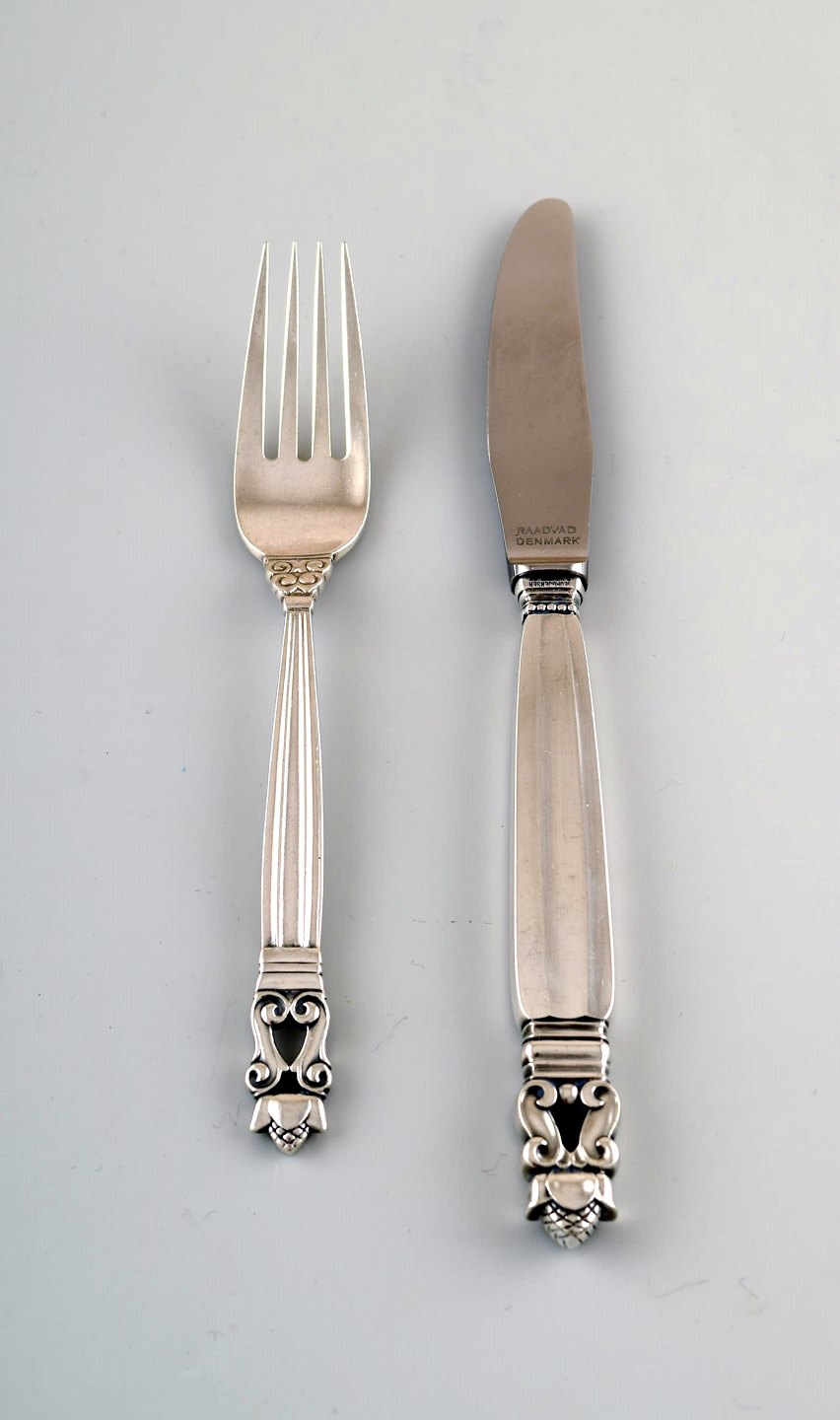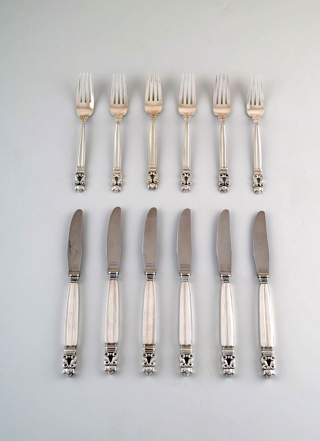 Early Georg Jensen Sterling Silver 'Acorn' Cutlery. Lunch service, 12 pieces for 6 people.