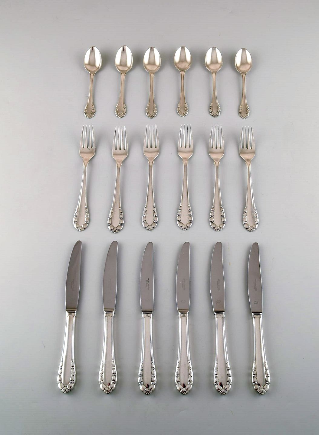 Consisting of: 6 dinner knives, 6 dinner forks and 6 spoons.