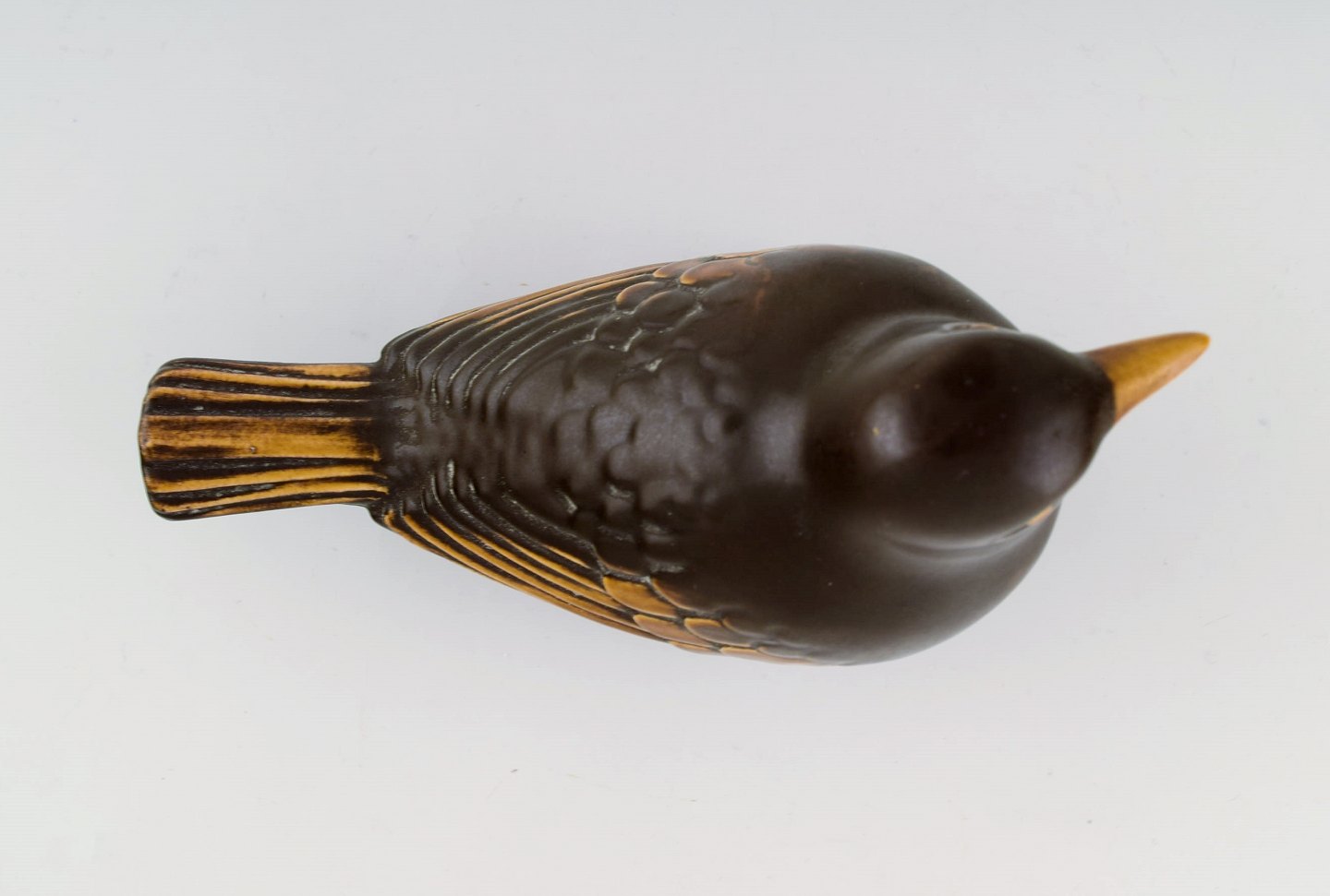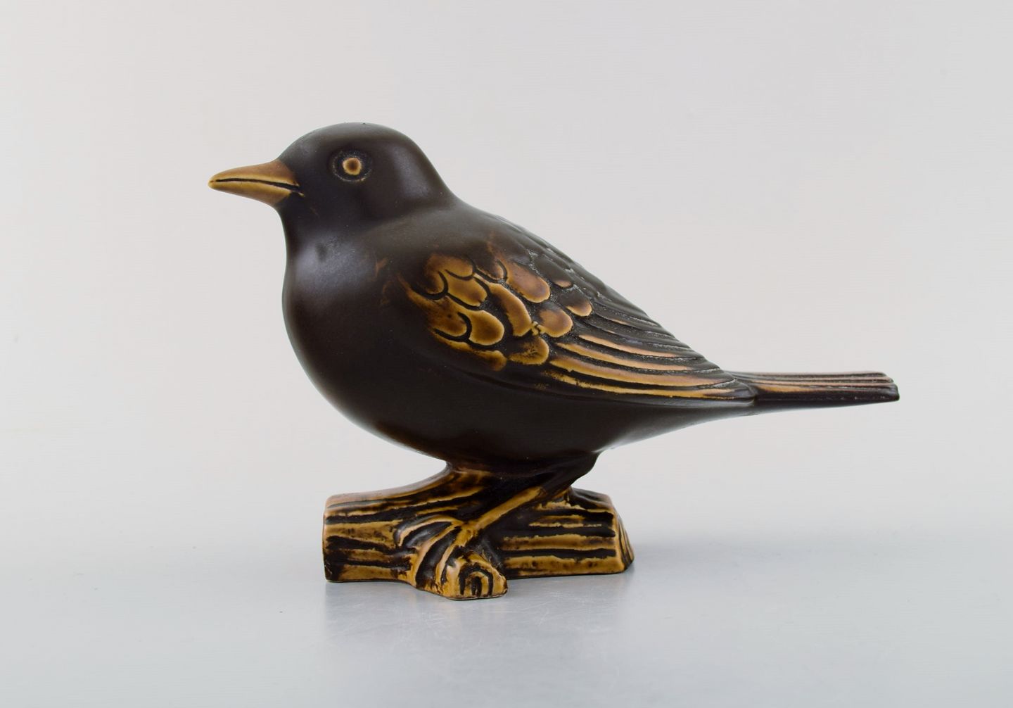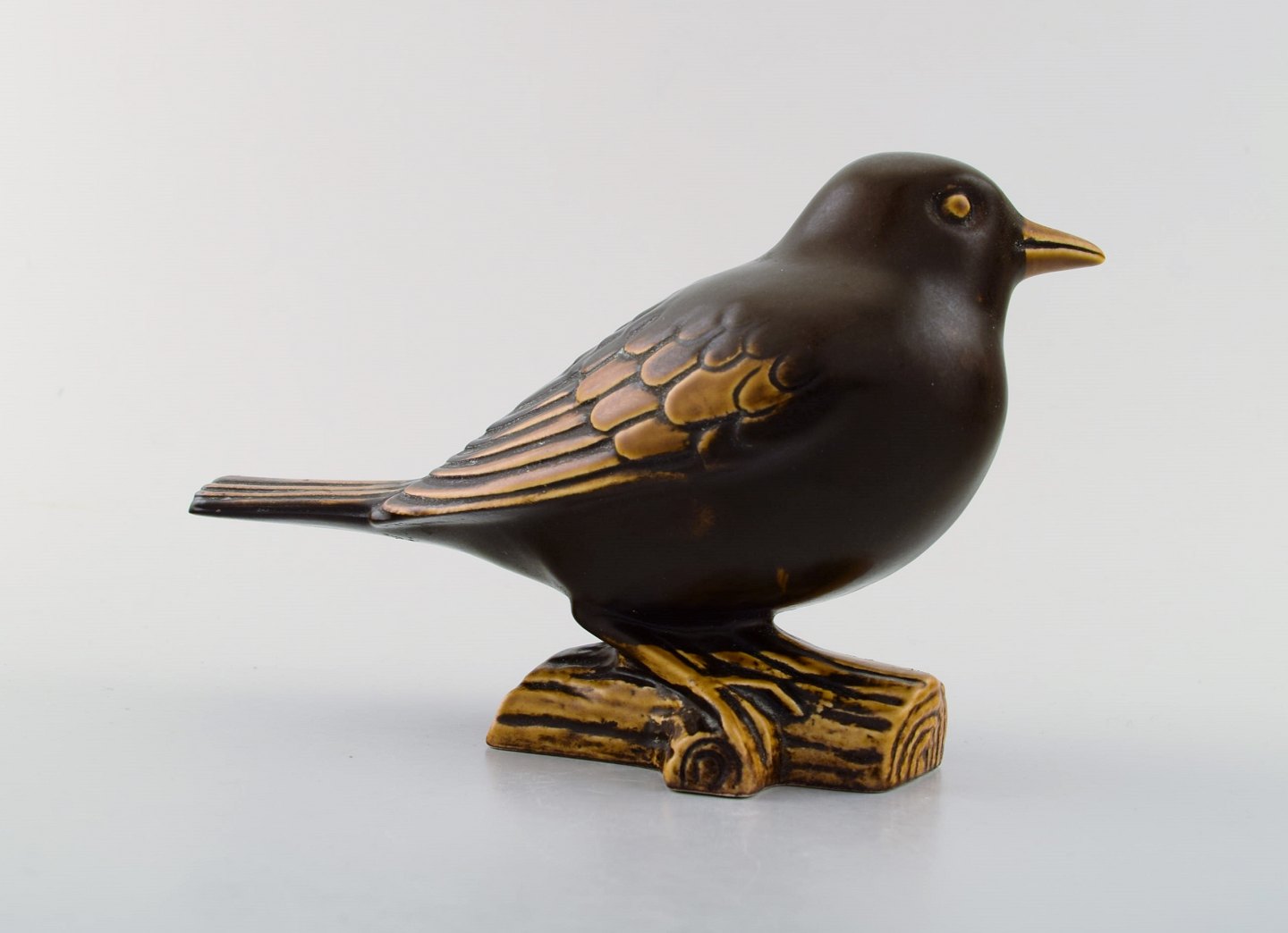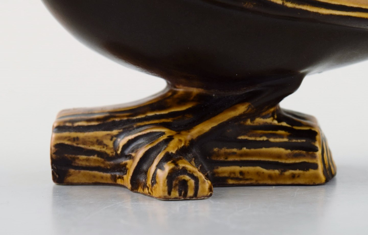 Sven Wejsfelt for Gustavsberg. Bird in stoneware. Beautiful glaze in brown shades. Signed. In perfect condition. Measures 19 x 12 cm.