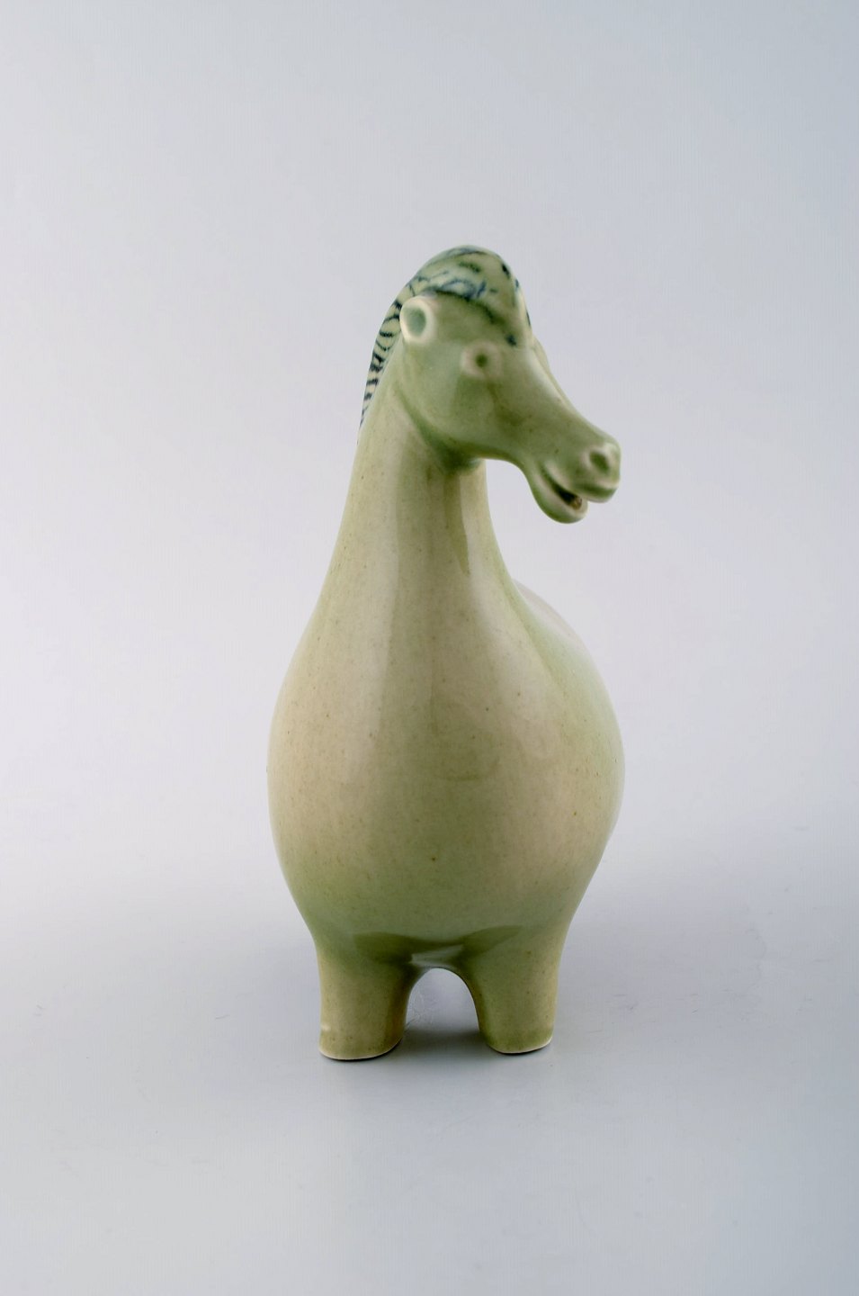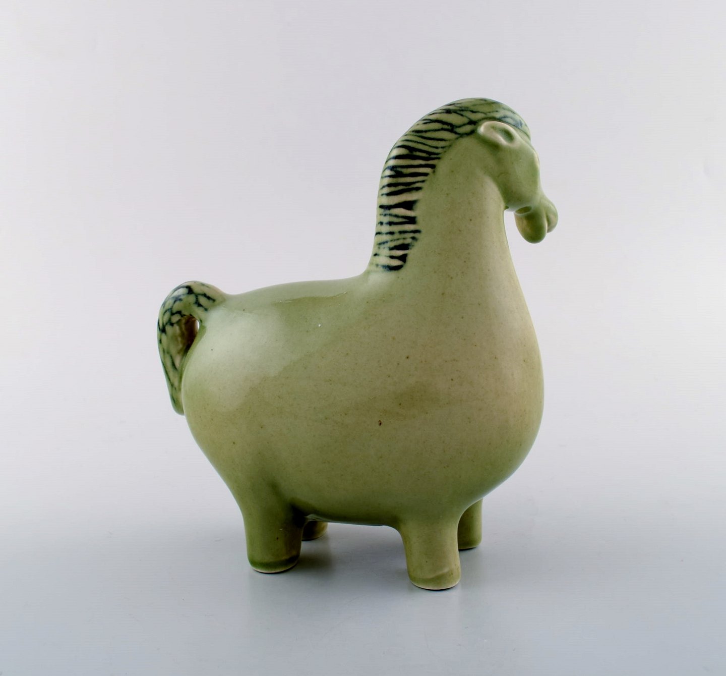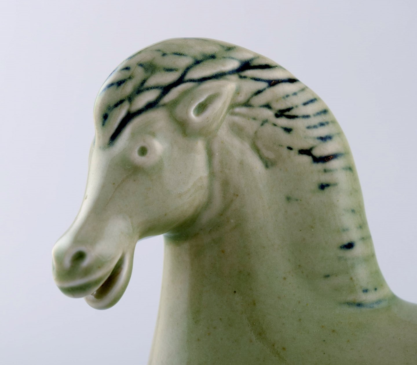 Stig Lindberg for Gustavsberg. Hestefigur af stentøj, dekoreret i grøn celadon glasur. Udført og stemplet hos Gustavsberg, Sverige. Måler: 17 x 16 cm. I flot stand.