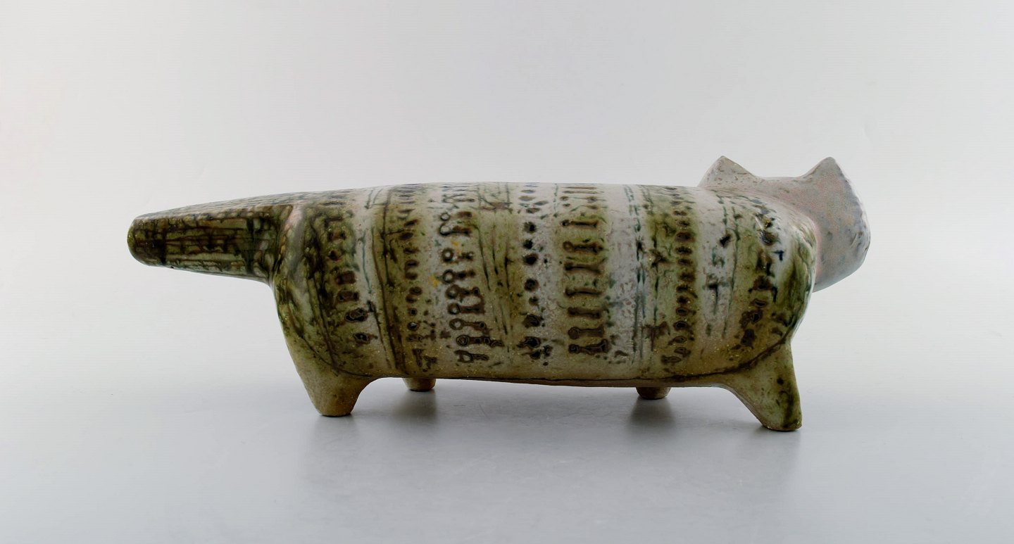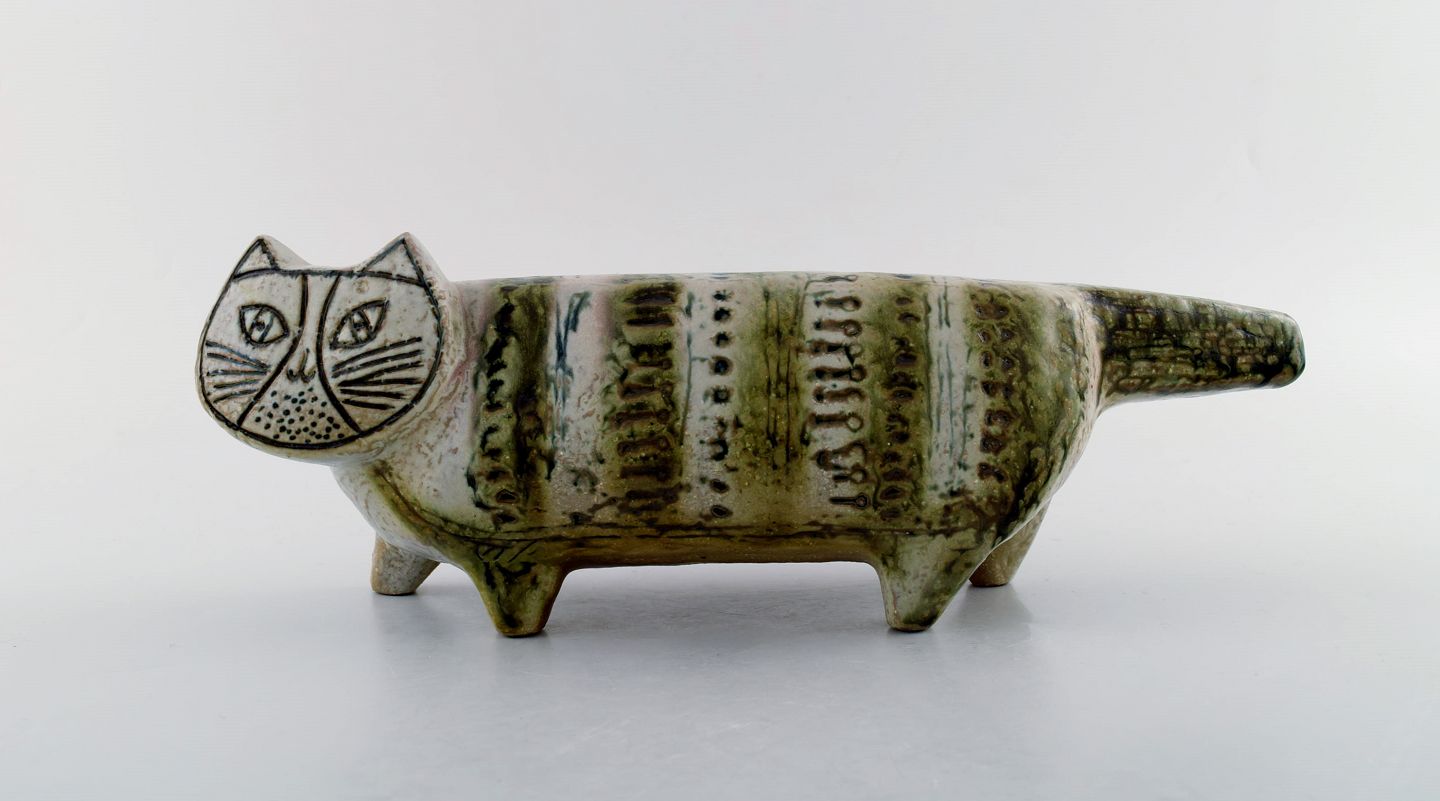 Lisa Larson for Gustavsberg. Stor stentøjsfigur af kat. Måler: 33 cm x 12 cm. I perfekt stand.
