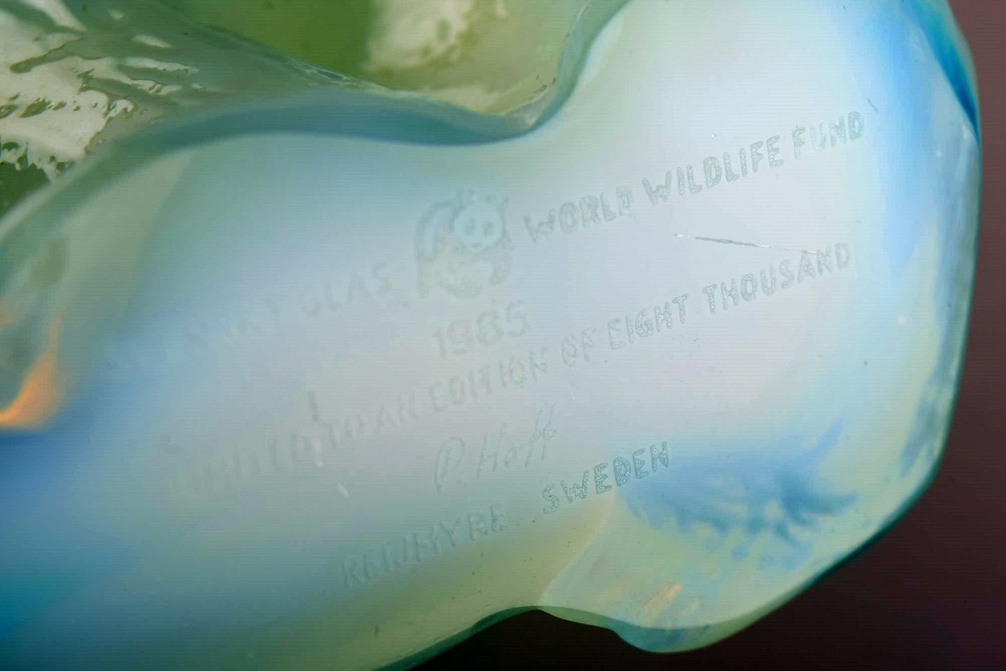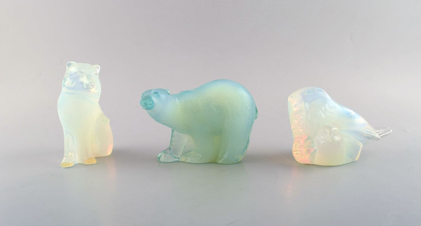 Paul Hoff for Svenskt glas. 3 figurer i form af isbjørn, polarræv og sneugle udført i kunstglas. WWF. Største måler: 14 cm x 9,5 cm. I perfekt stand. Stemplet.