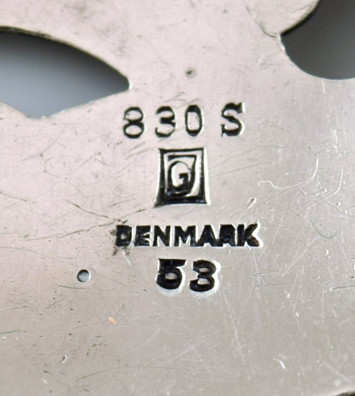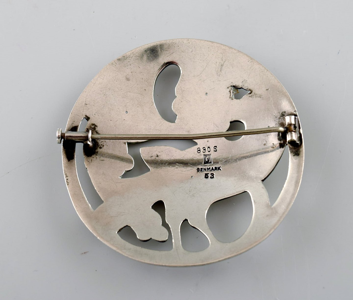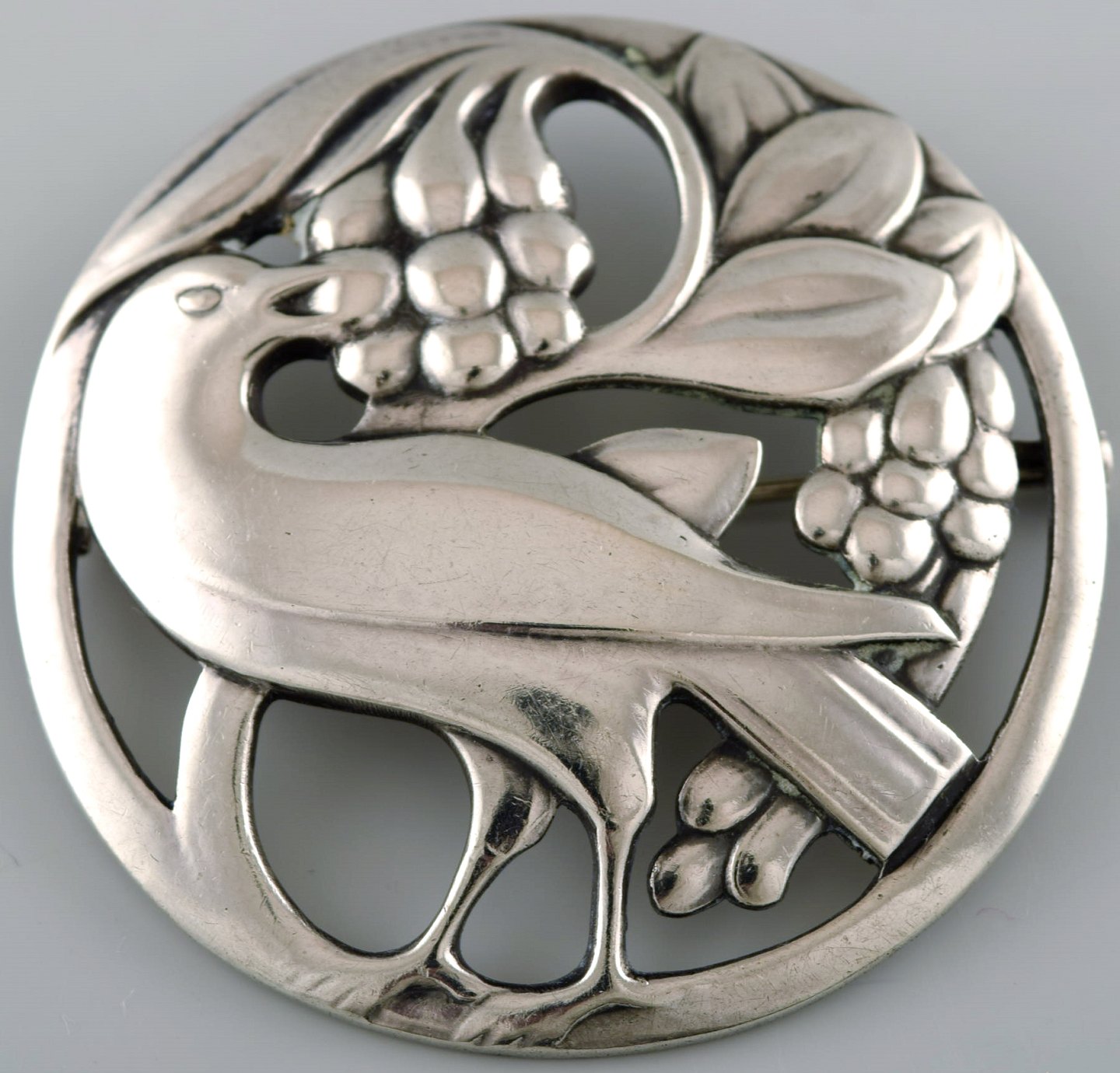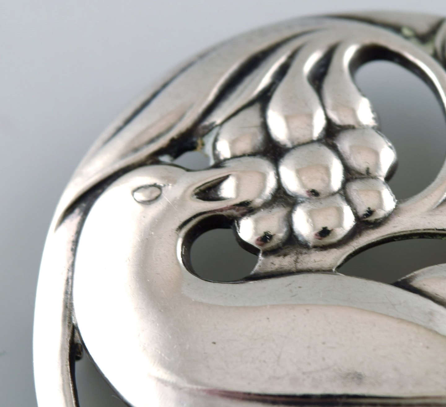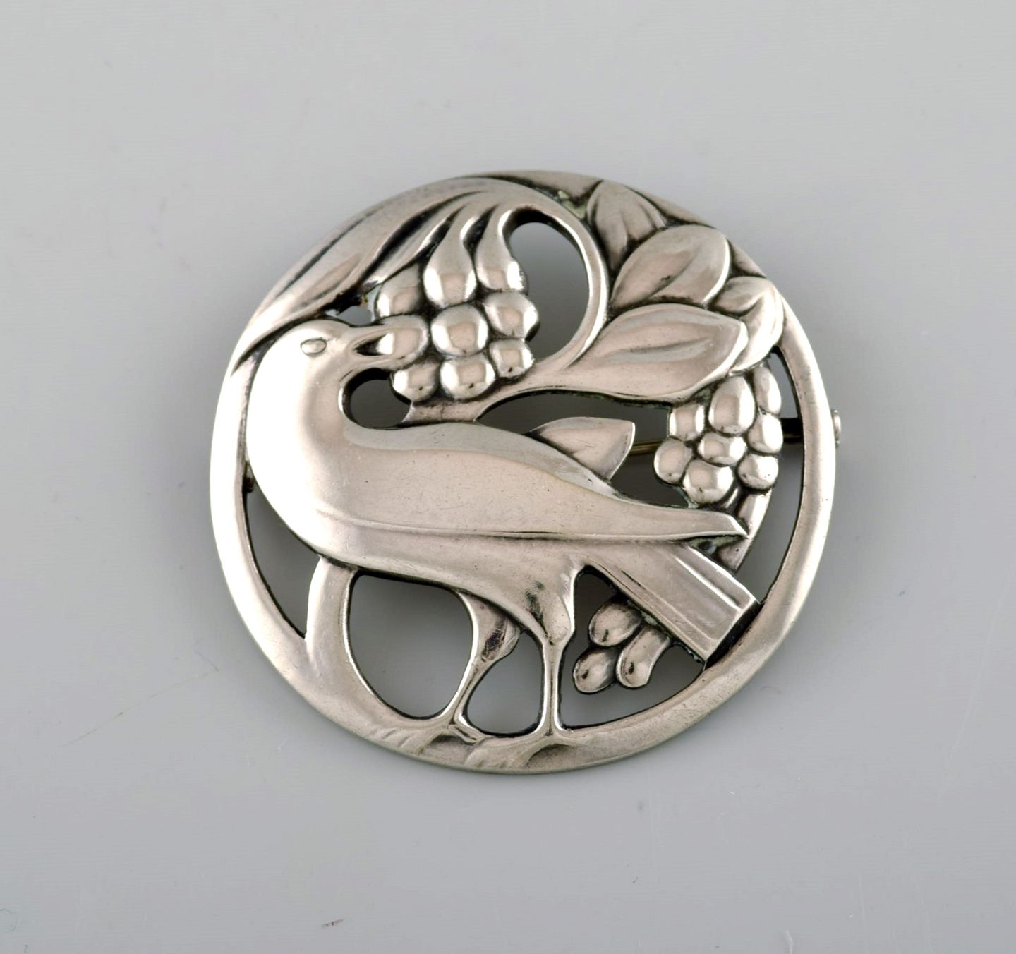 Early Georg Jensen brooch in sterling silver. Design number 53. Bird motif and grapes. Early stamp: 1933-1944. In very good condition. Designed by Georg Jensen in 1908. Diameter: 5.6 cm.