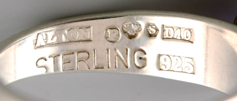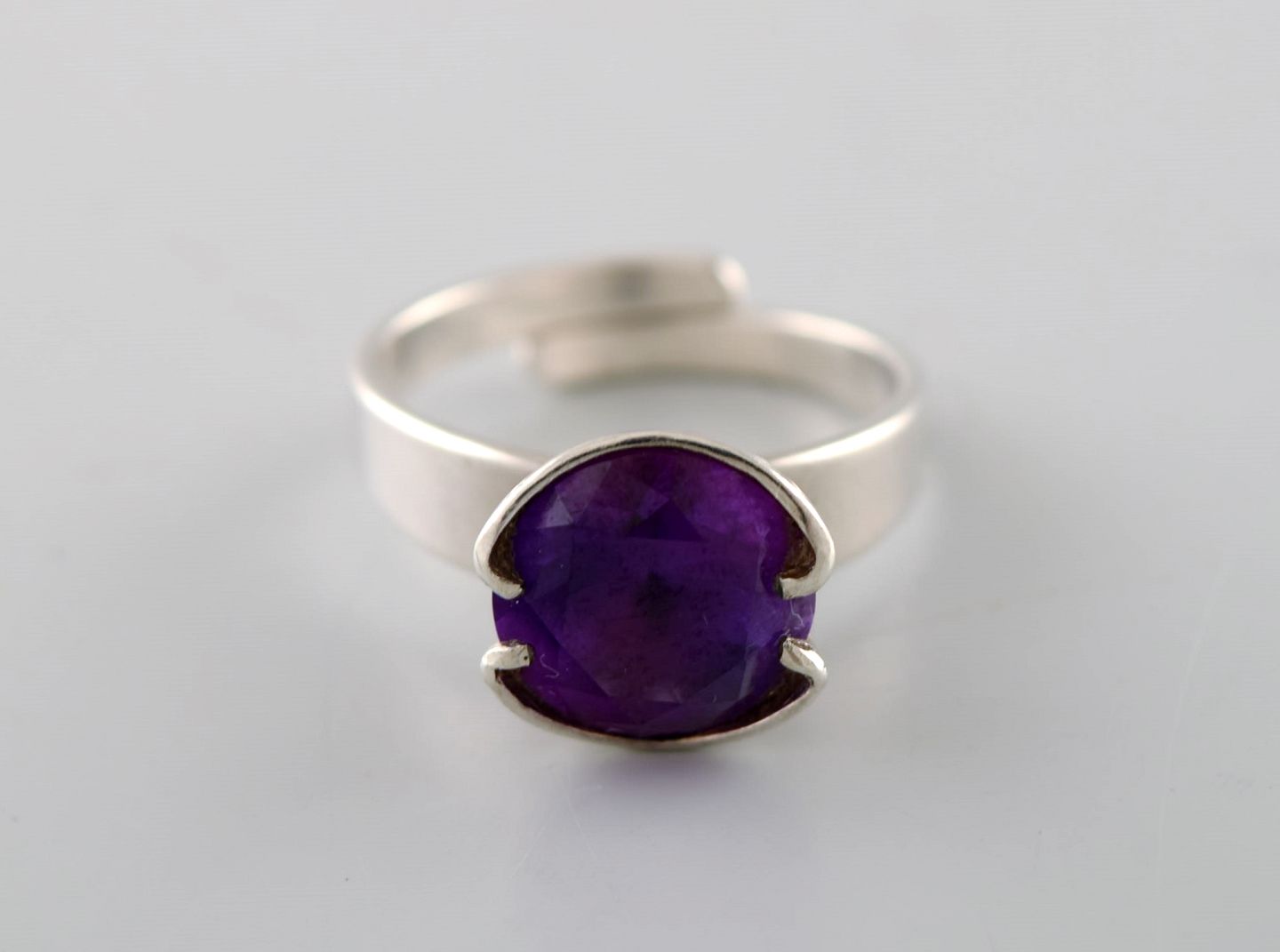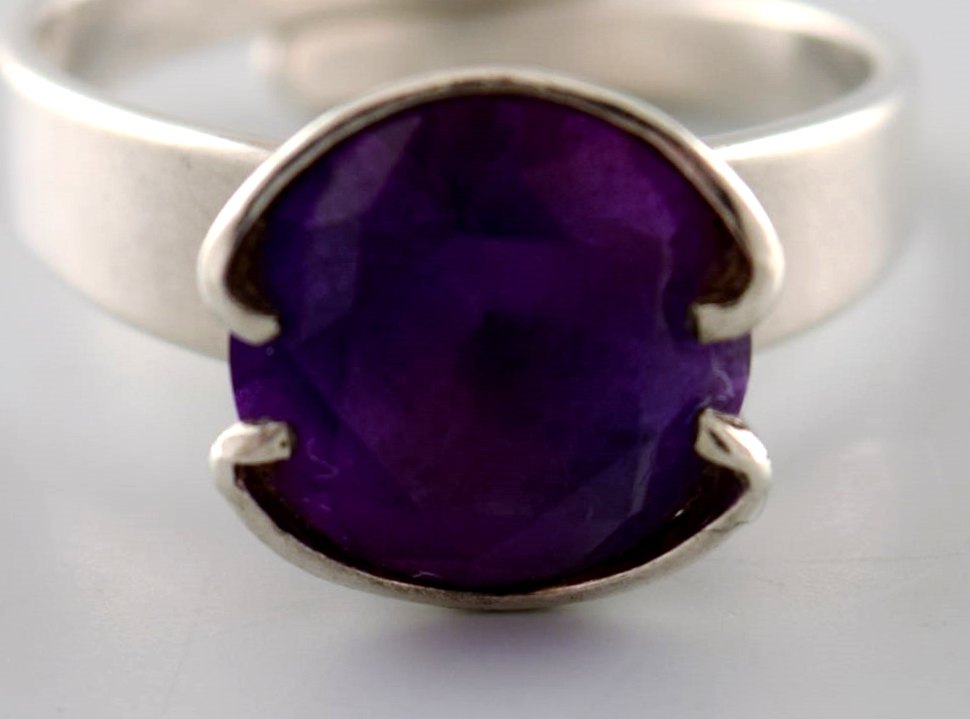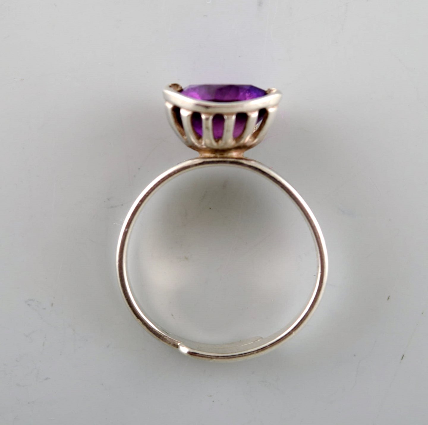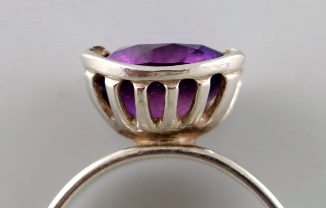Alton, Falköping. Svensk modernistisk sterlingsølvring med violet sten. Dateret 1978.