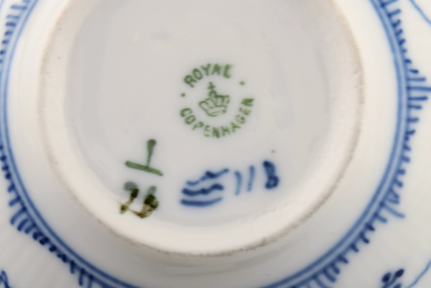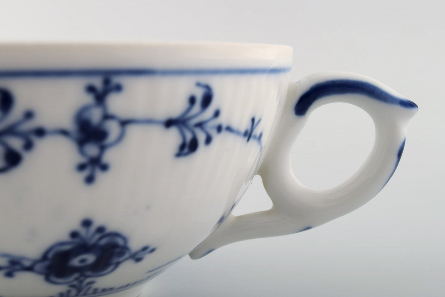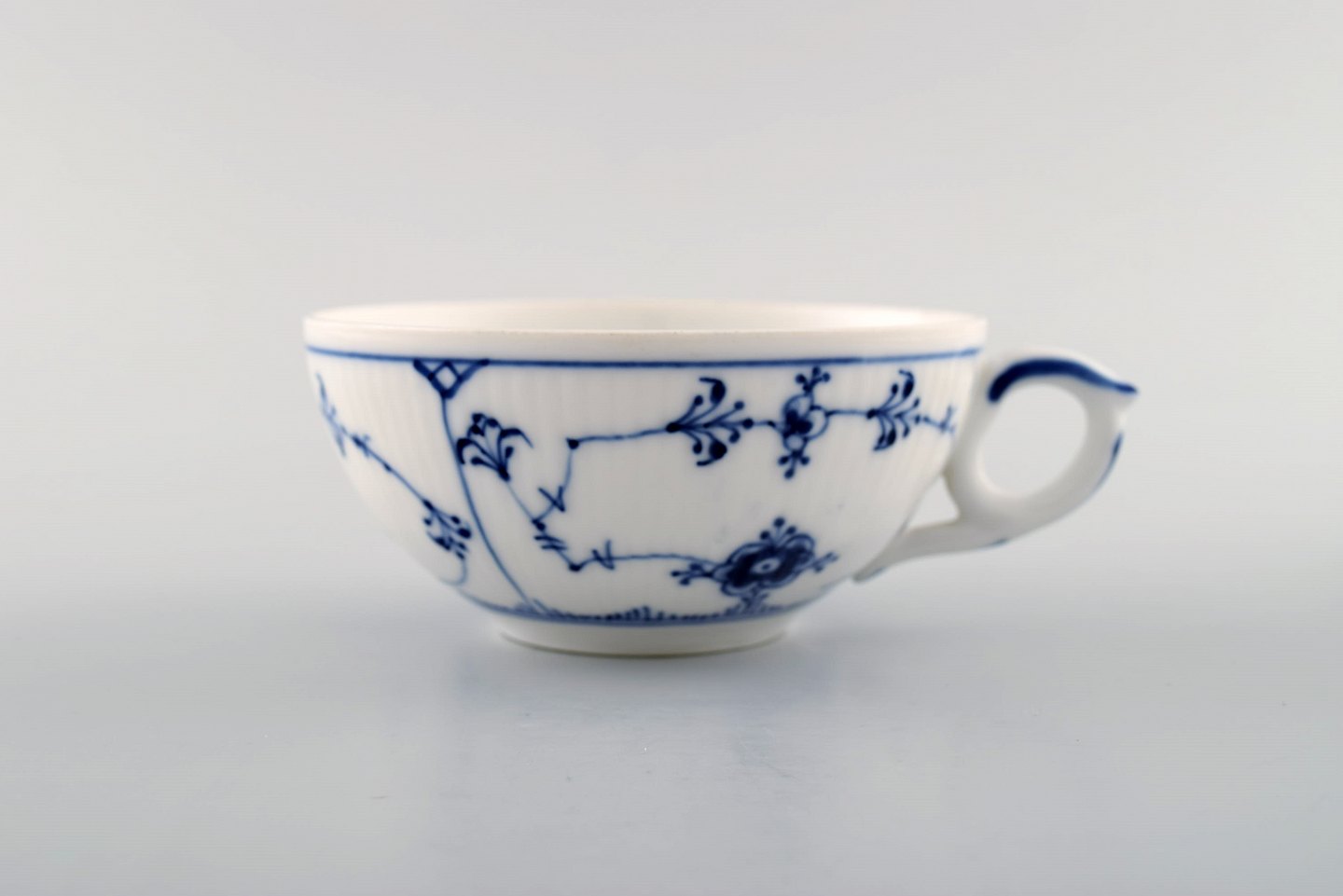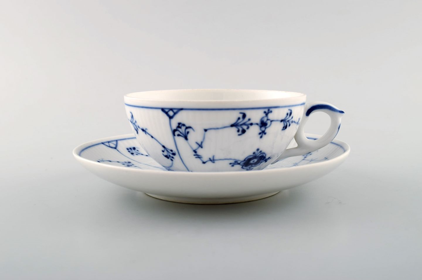 Royal Copenhagen Musselmalet riflet thekop med underkop # 1/76.
