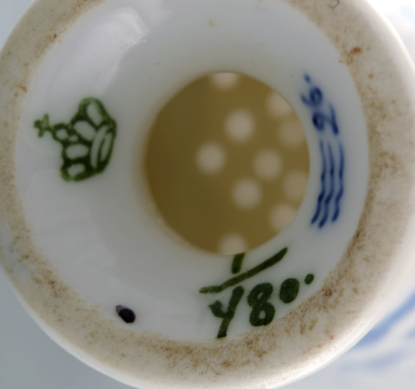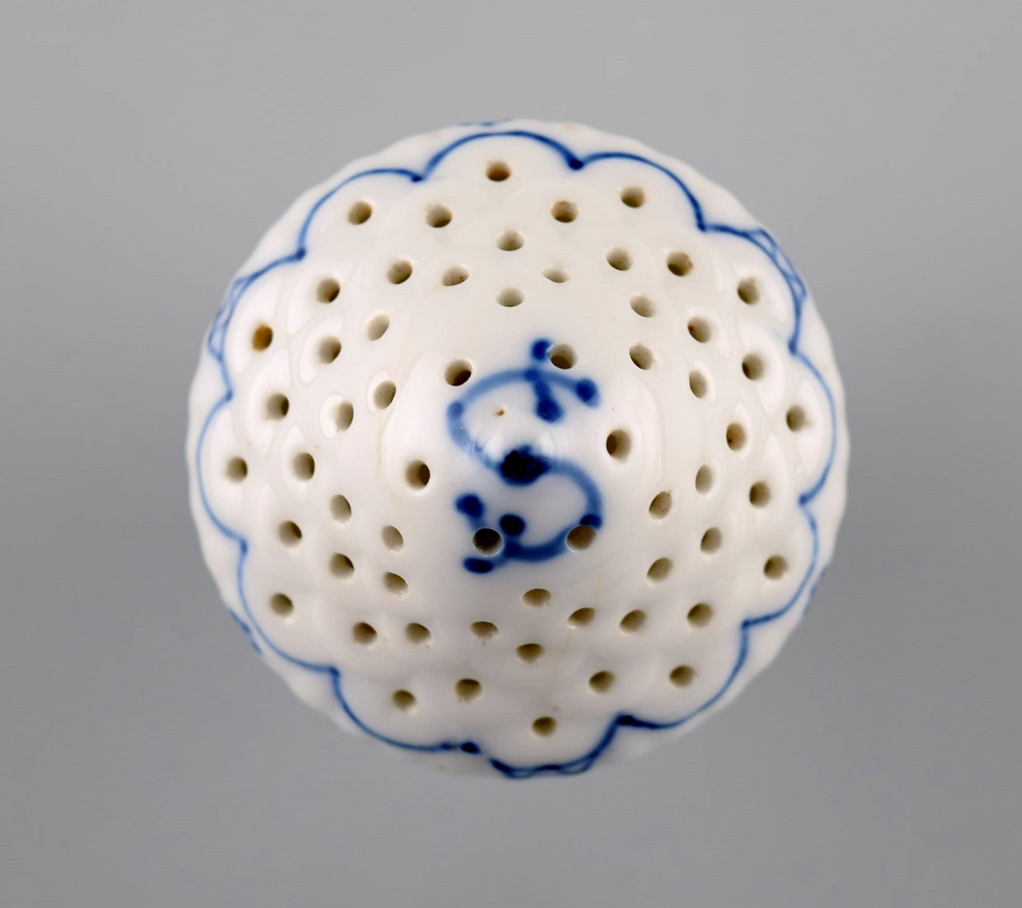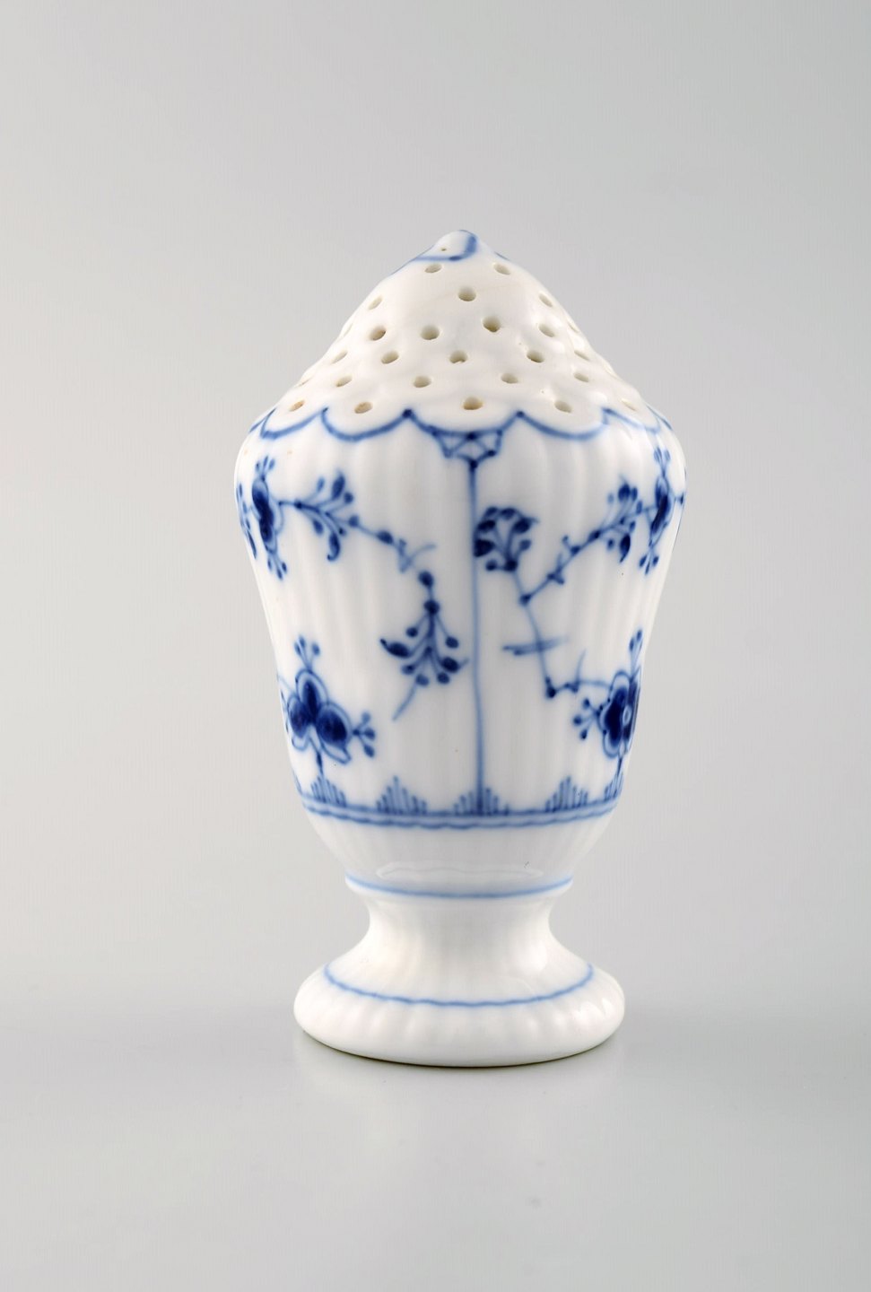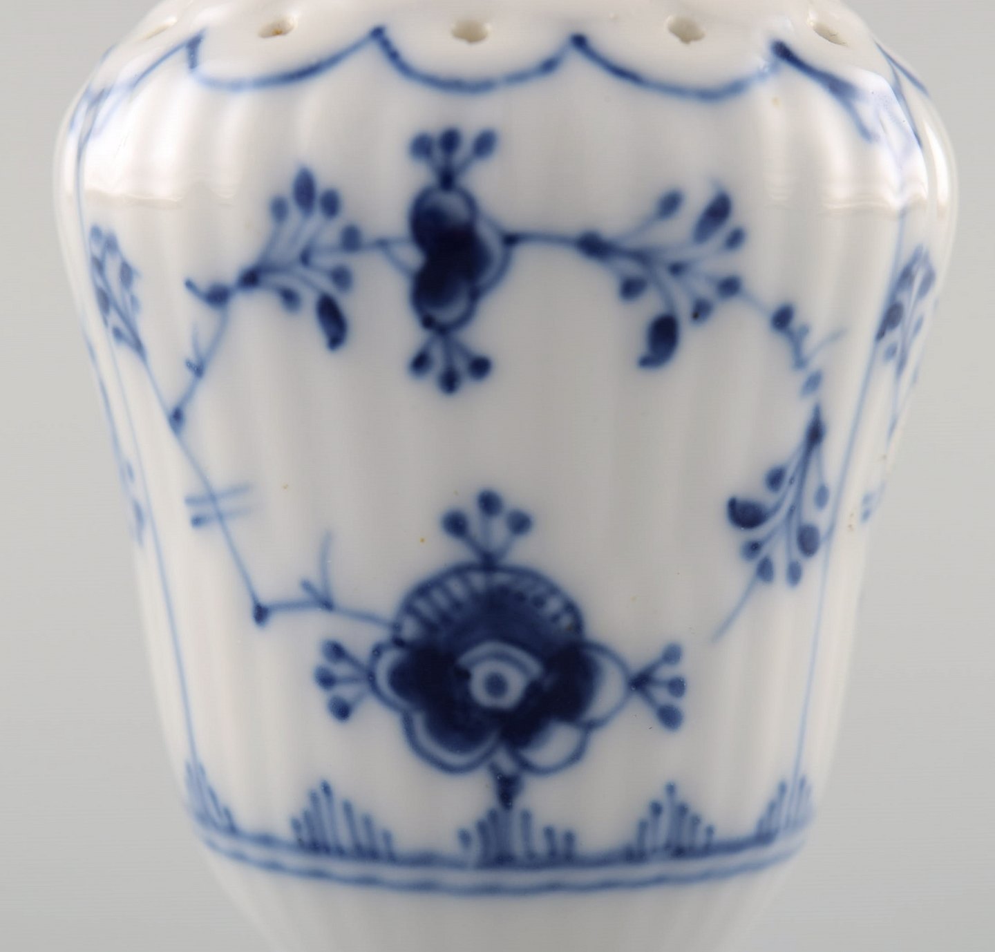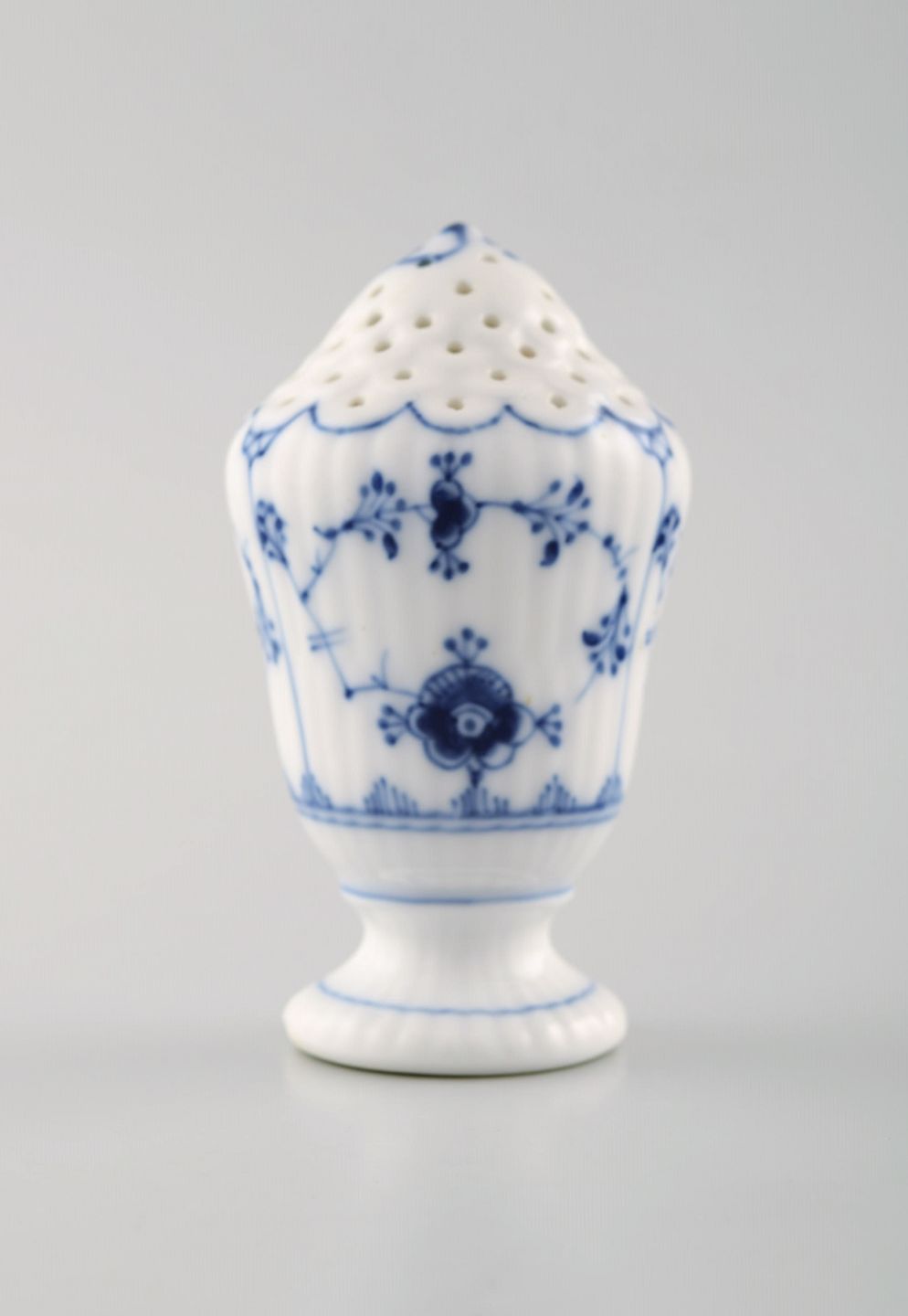 Royal Copenhagen Blue fluted salt shaker # 1/480. 1st. factory quality. In perfect condition. Early stamp. Measures: 8,5 x 5,2 cm.