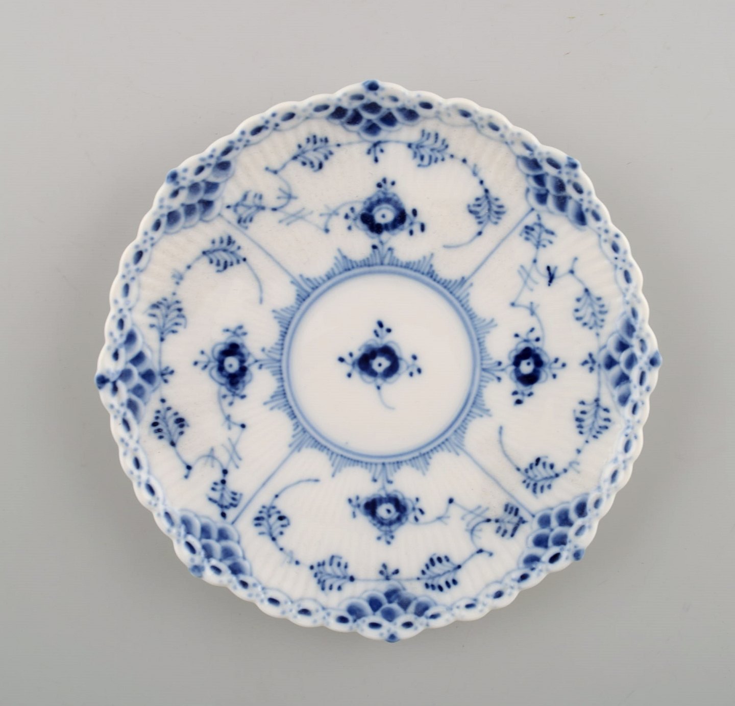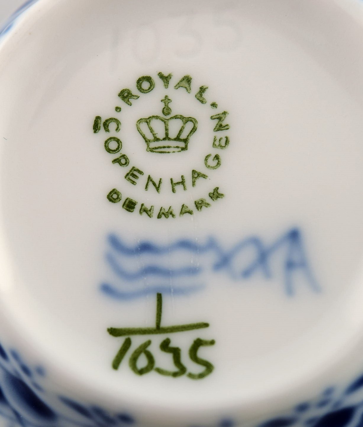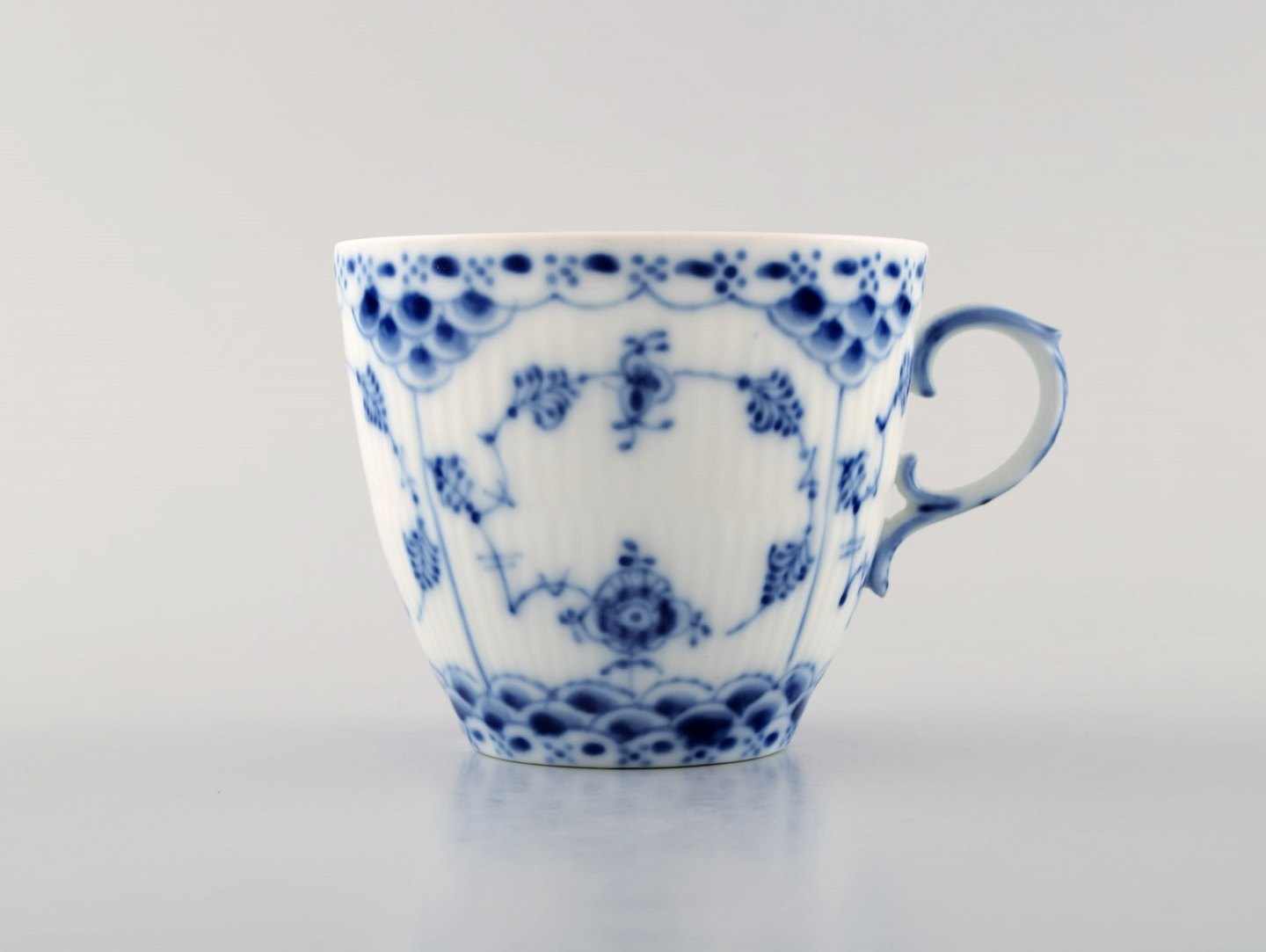 Royal Copenhagen Musselmalet helblonde kaffekop med underkop # 1/1035. 1. sortering. I perfekt stand. Stemplet. Kop måler: 7 x 6 cm. Underkop måler: 13,5 cm.