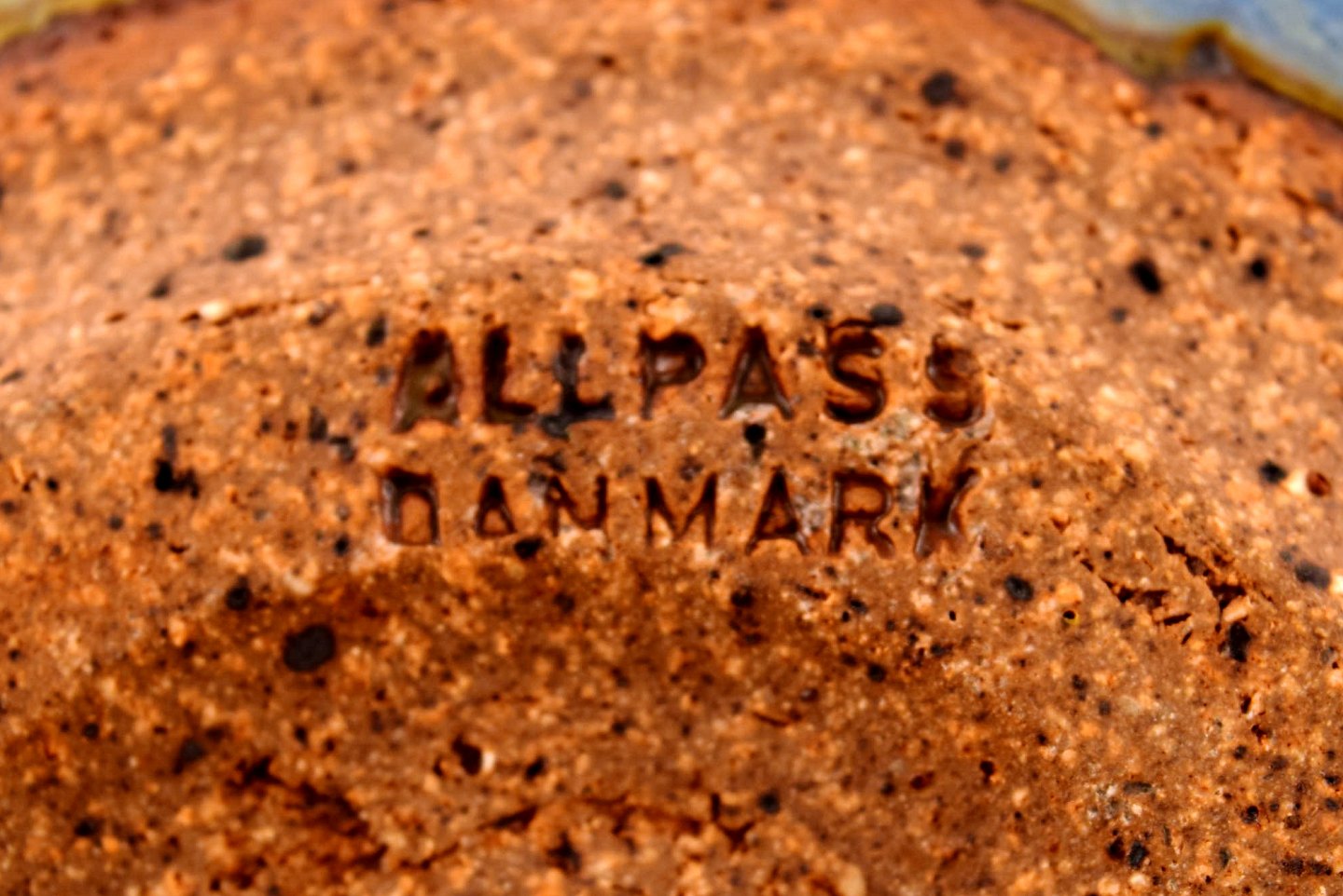 Helle Allpass fremstillede brugsting i stentøj, men er især kendt for sine store drejede unika-arbejder. Glasur farverne var brune og støvet marineblå, med et strej af farver og jernpletter.