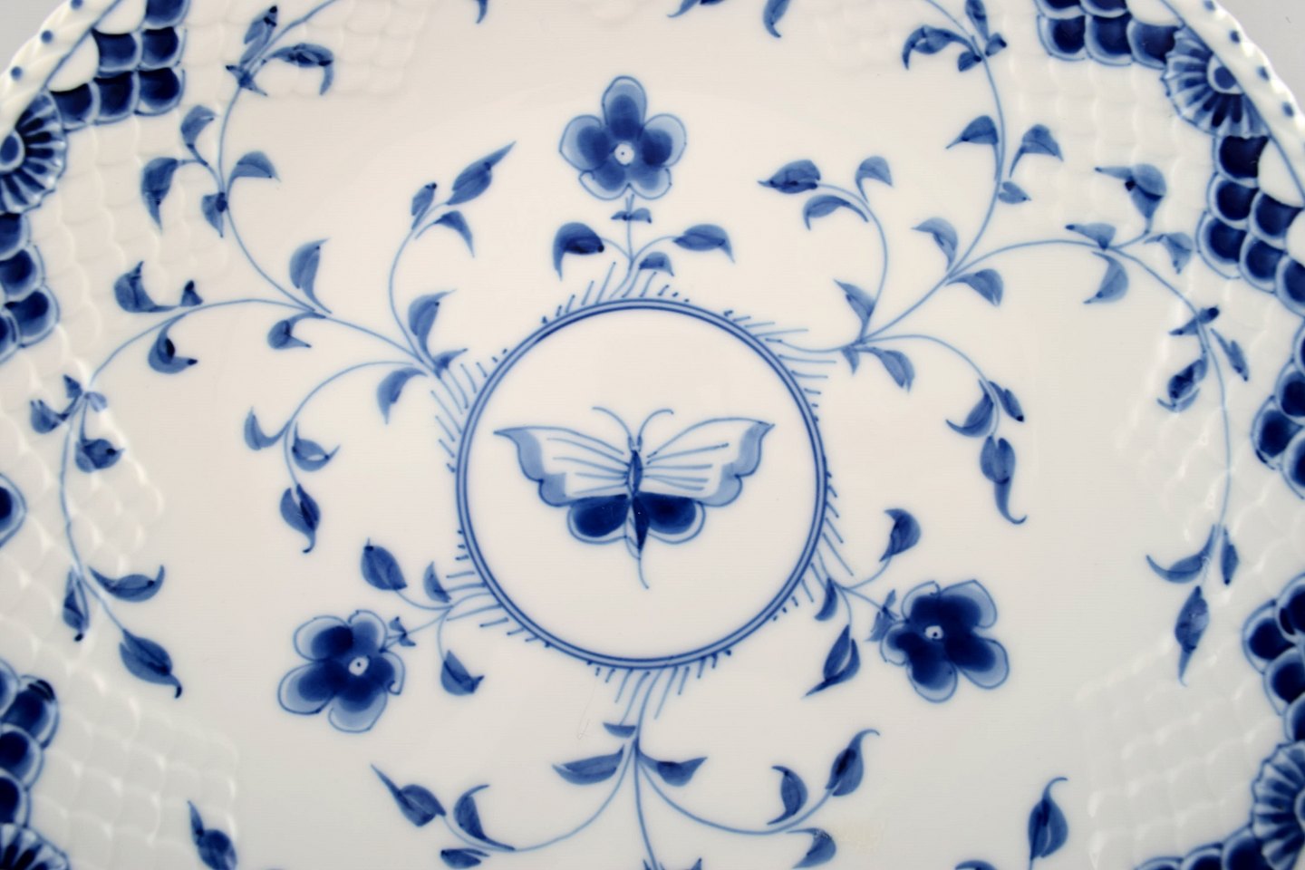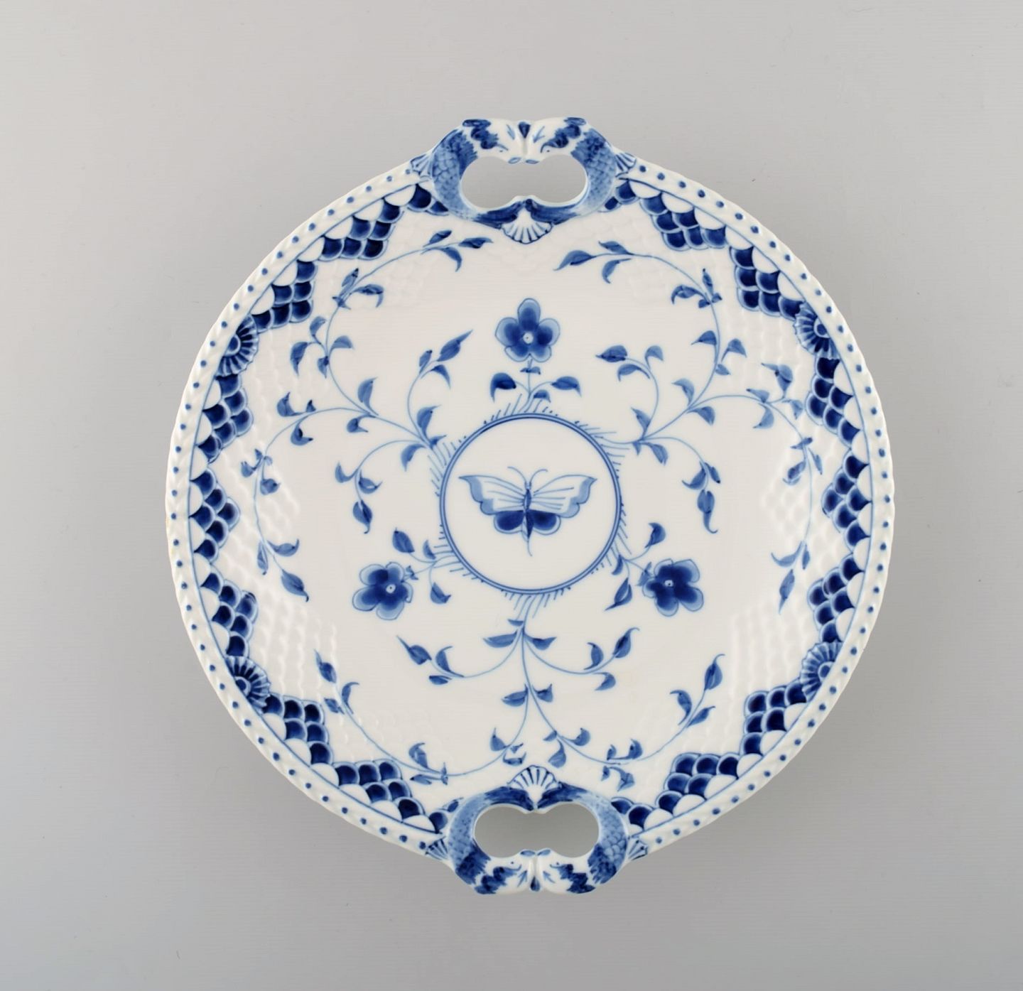 Bing & Grøndahl / B&G, Sommerfugl. Rundt fad med hanke. Måler: 26,5 cm. I perfekt stand. Stemplet.