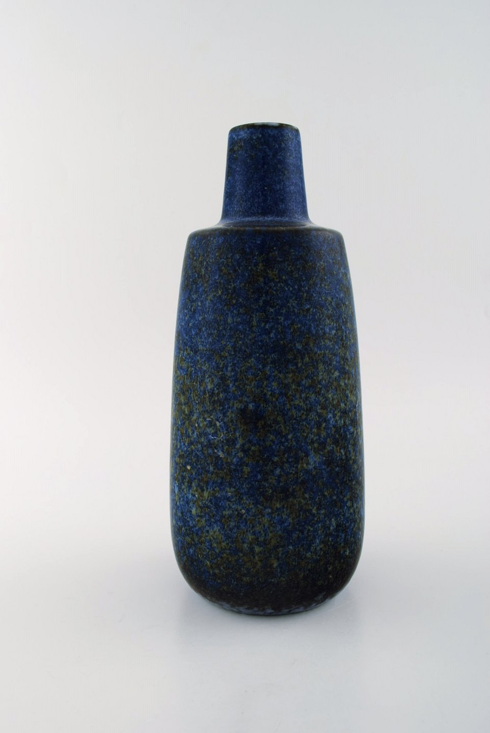 Carl-Harry Stålhane for Rørstrand. Keramikvase dekoreret med spættet blå glasur. 1950'erne. Måler 27,5 x 12 cm. I perfekt stand. 2. sortering. Signeret.