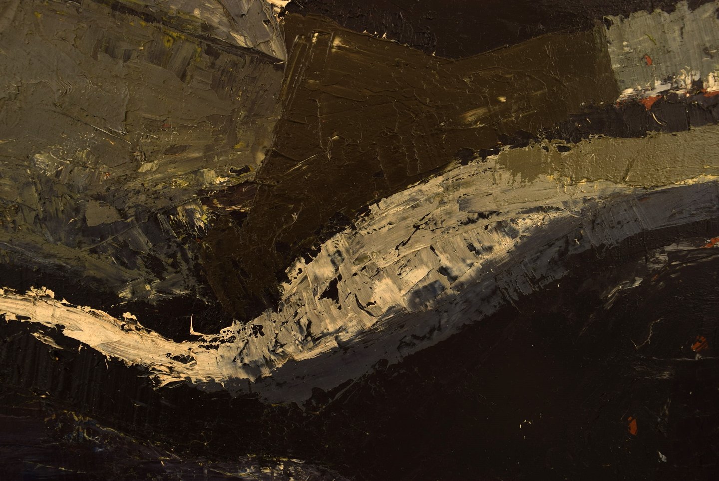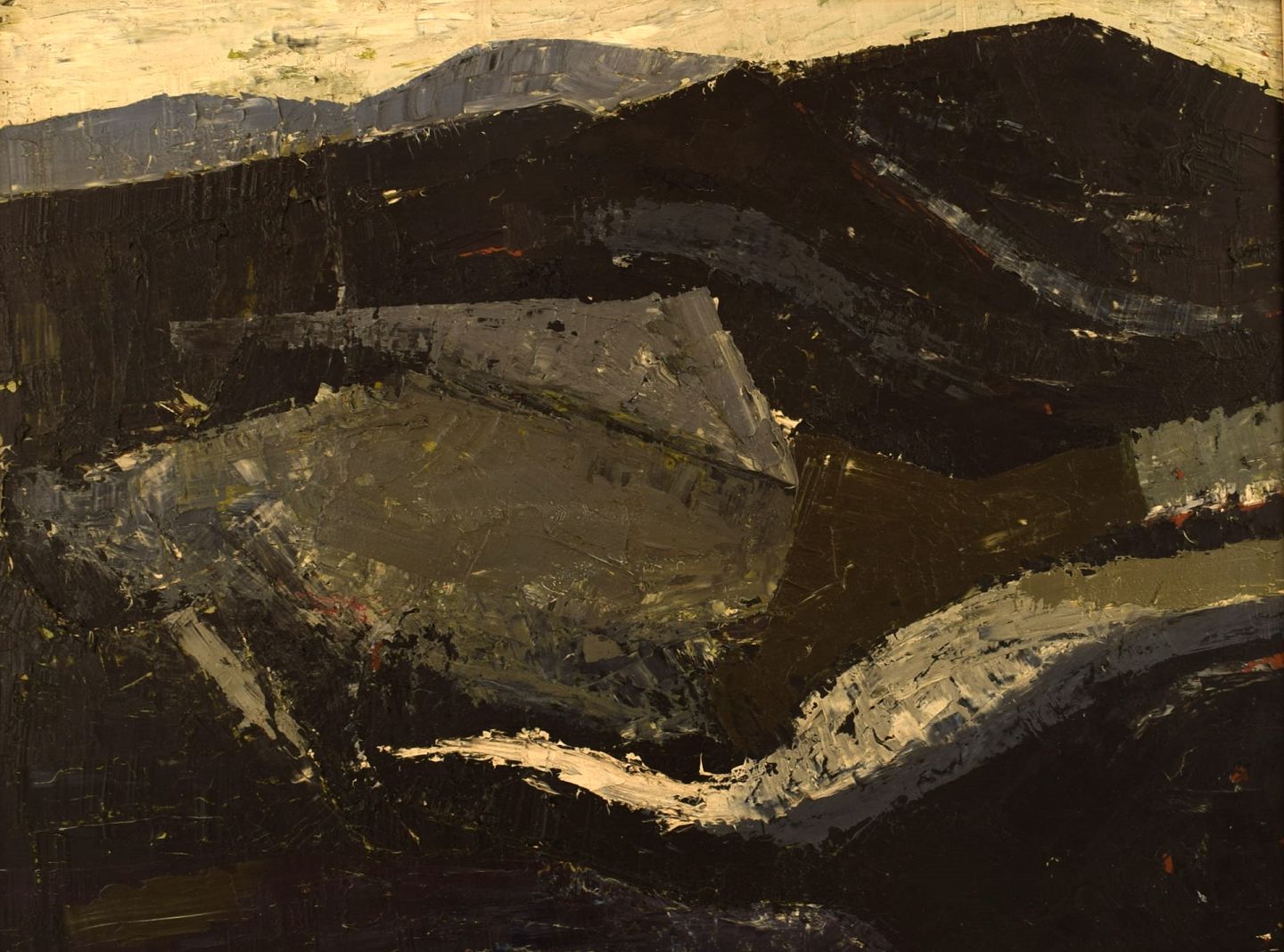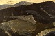 Frank Hammershøj (b. 1940, d. 2013), danish painter. Oil on board. Modernist landscape with mountains. 1960's. In very good condition. The board measures: 54 x 40 cm. The frame measures: 4.5 cm.