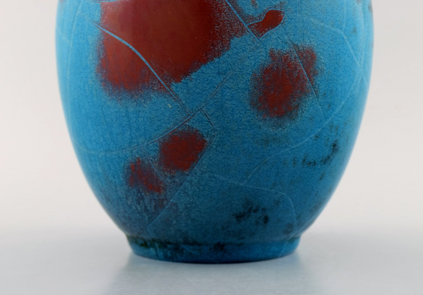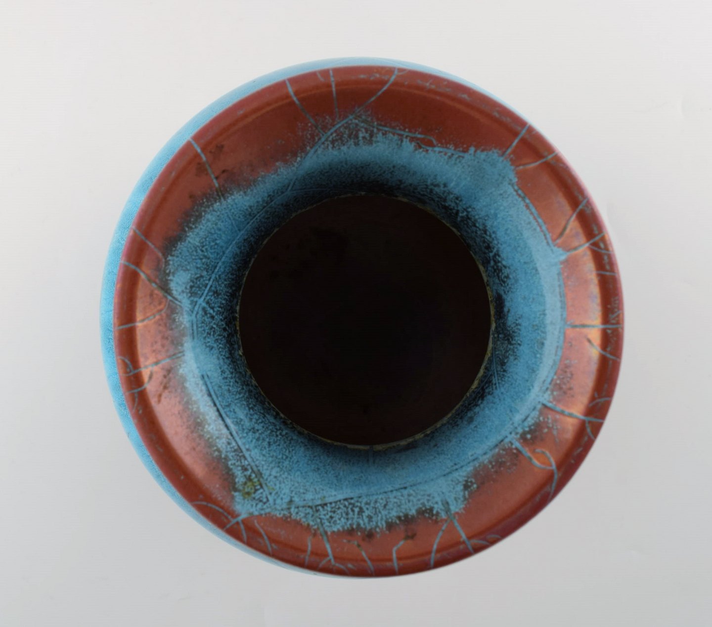 Ipsens enke art deco keramikvase. Smuk turkis glasur. 1940/50'erne. Måler 25 x 19,5 cm. I perfekt stand. Stemplet.