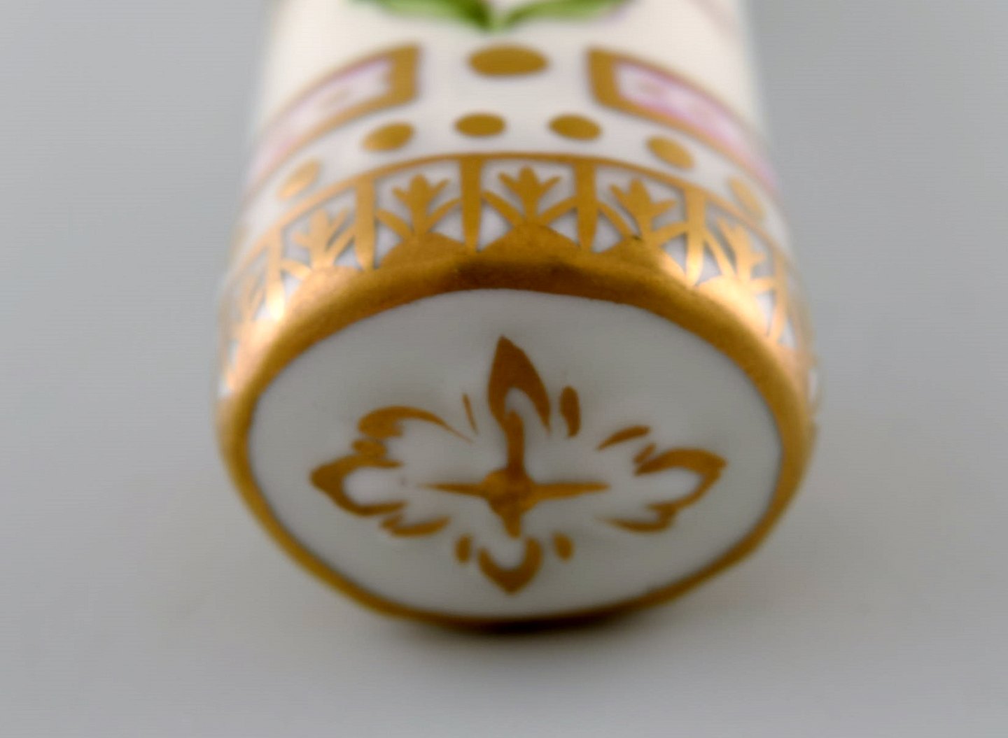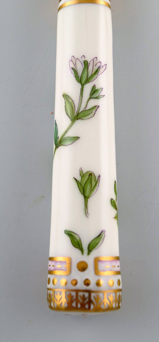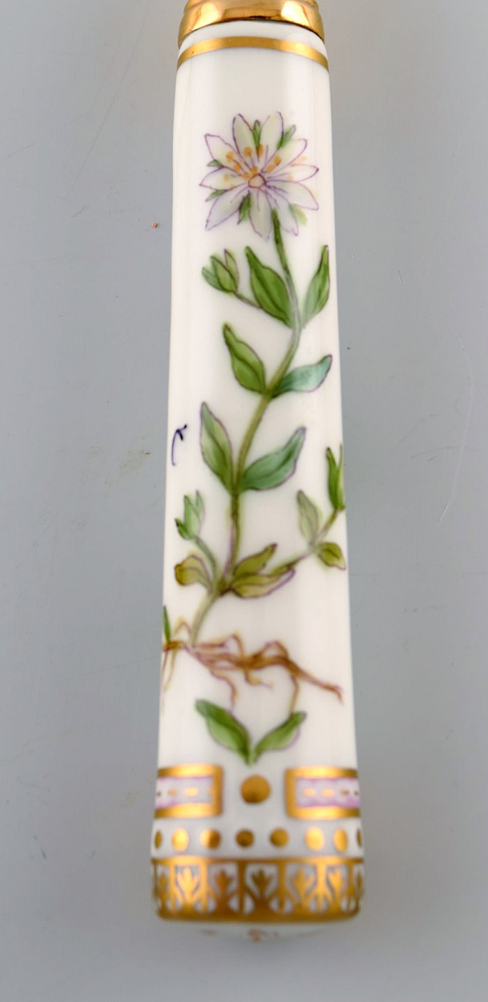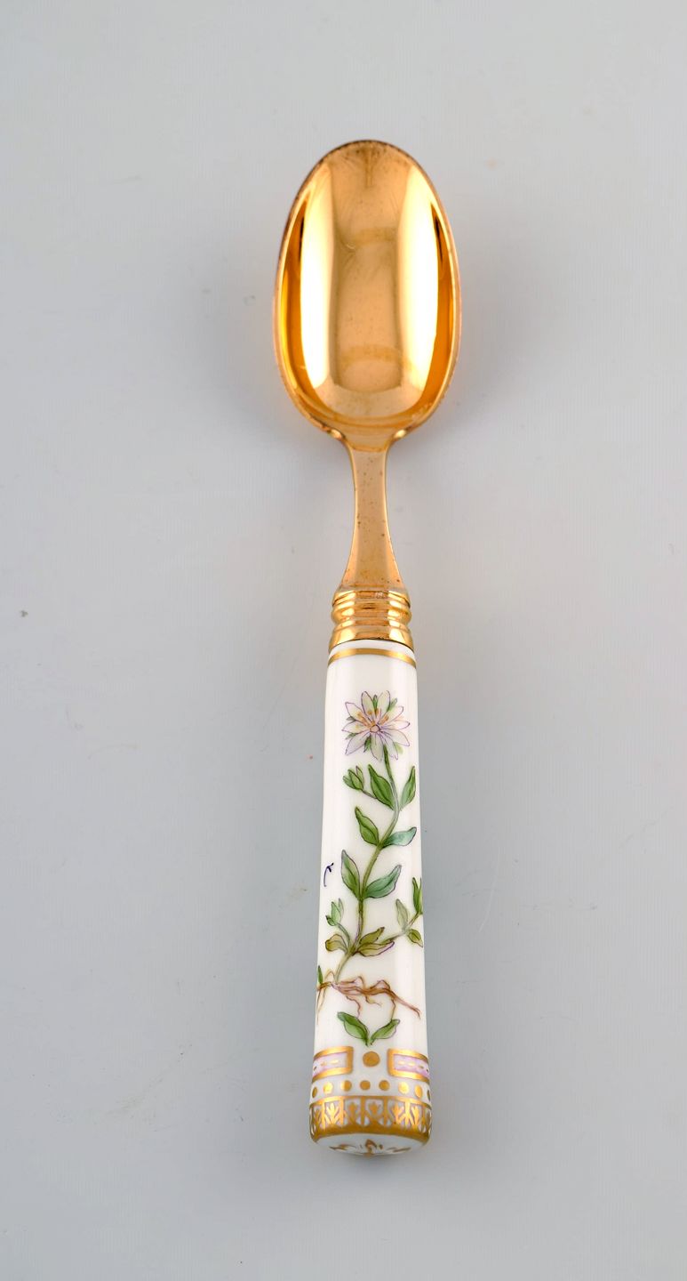Michelsen for Royal Copenhagen. "Flora Danica" spiseske af forgyldt sterlingsølv. Skafte af porcelæn dekoreret i farver og guld med blomster. I flot stand. Stemplet. Måler: 21 cm.