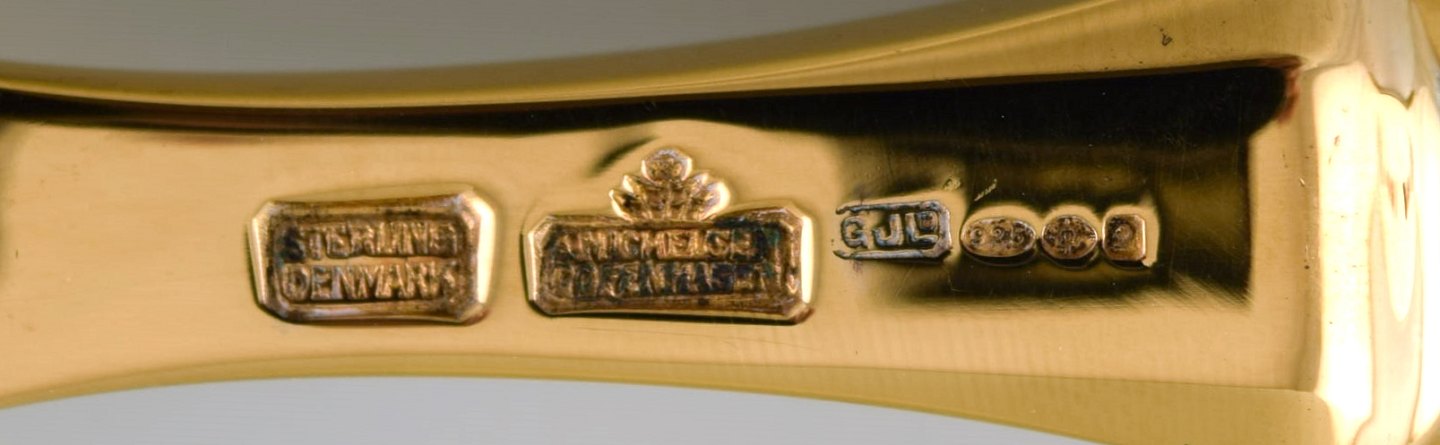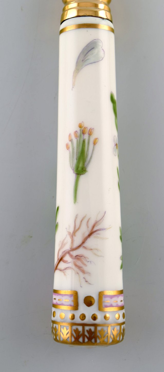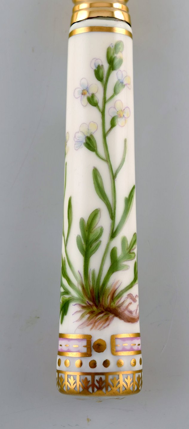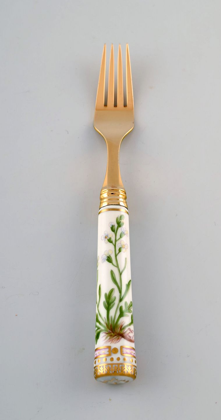 Michelsen for Royal Copenhagen. "Flora Danica" lunch fork made of gold plated sterling silver. Porcelain handles decorated in colors and gold with flowers. In very good condition. Stamped. Measures: 21 cm.