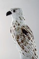 Islandsk falk af keramik dekoreret med grå, grønne, brune og hvid glasur.