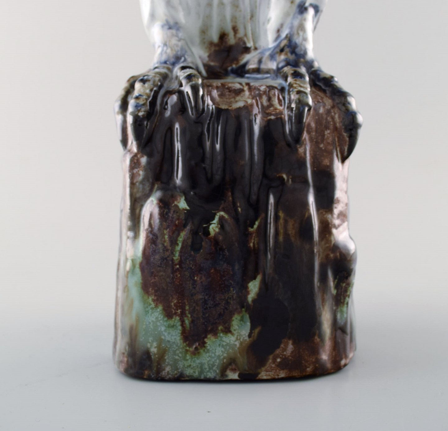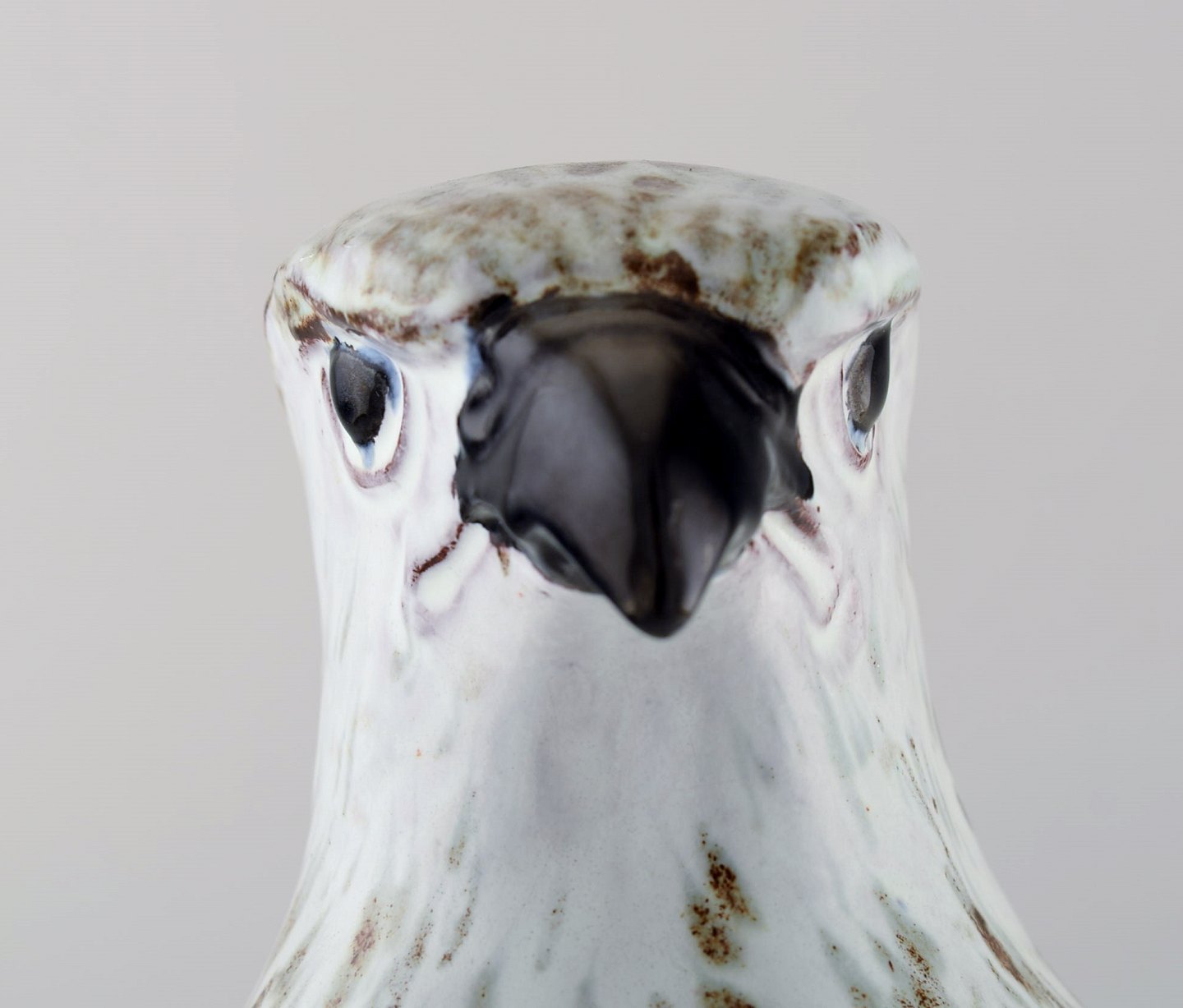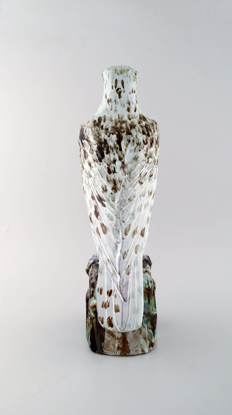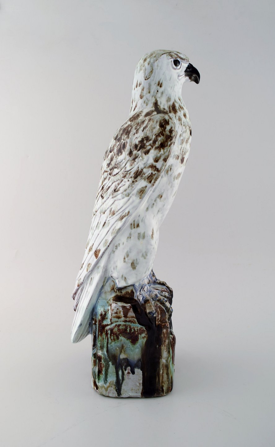 Gudmundur Mar Einarsson f. Middal 1895, d. 1963: Islandsk falk af keramik dekoreret med grå, grønne, brune og hvid glasur. Signeret i monogram GE, Island. 1940. Måler : 45 cm. x 18 cm. I perfekt stand.