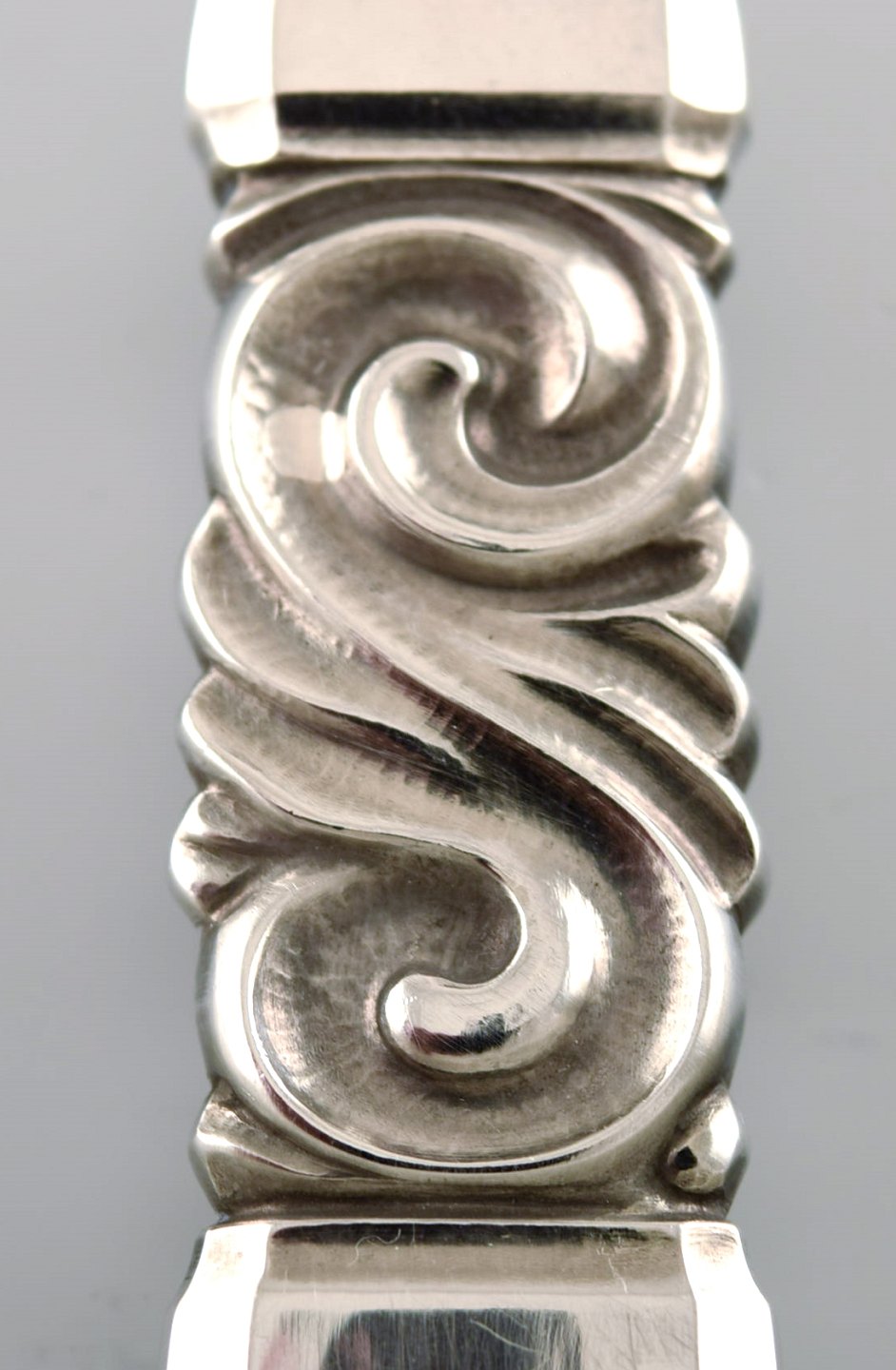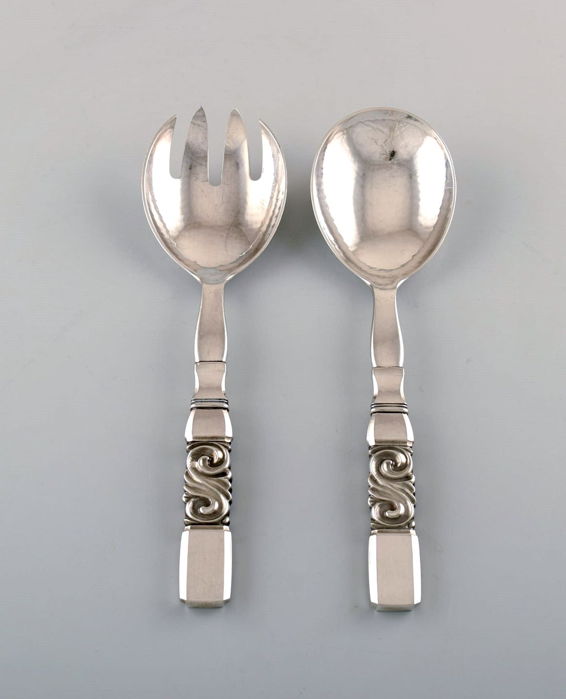 Georg Jensen. Cutlery, Scroll No. 22, hammered sterling silver salad set in full silver. In perfect condition. Stamped. Measures: 22 cm.