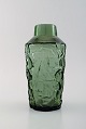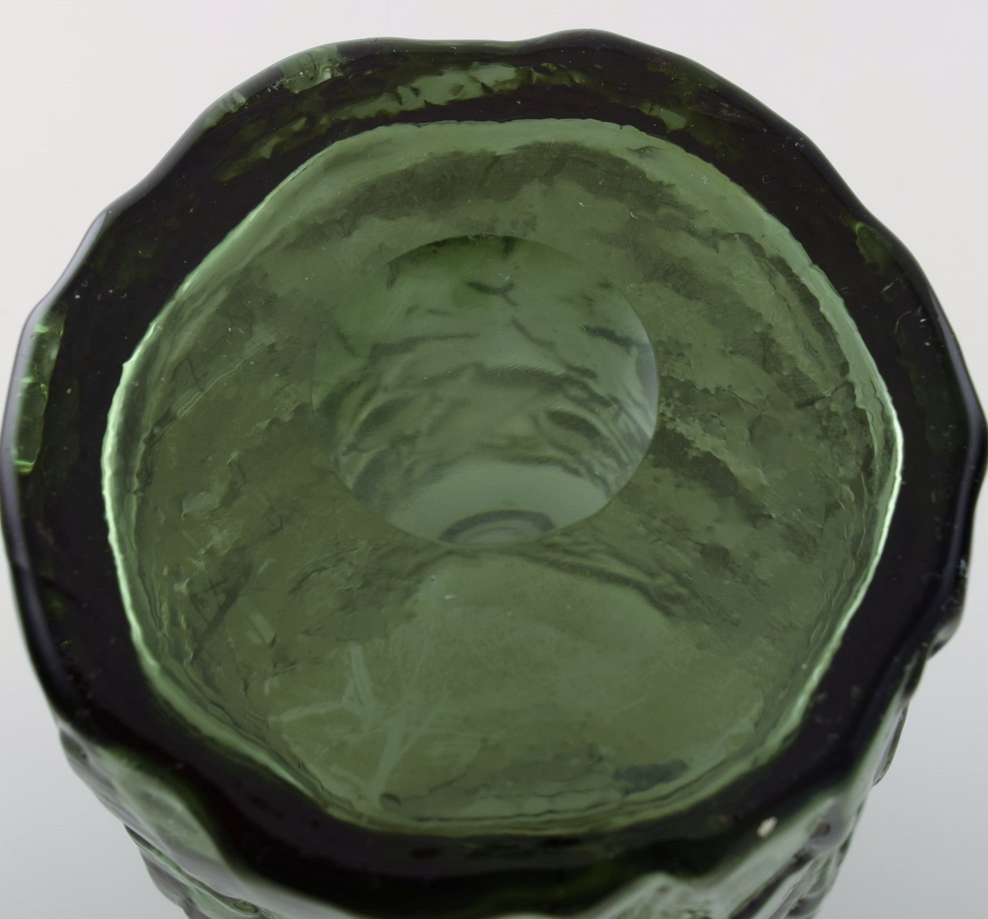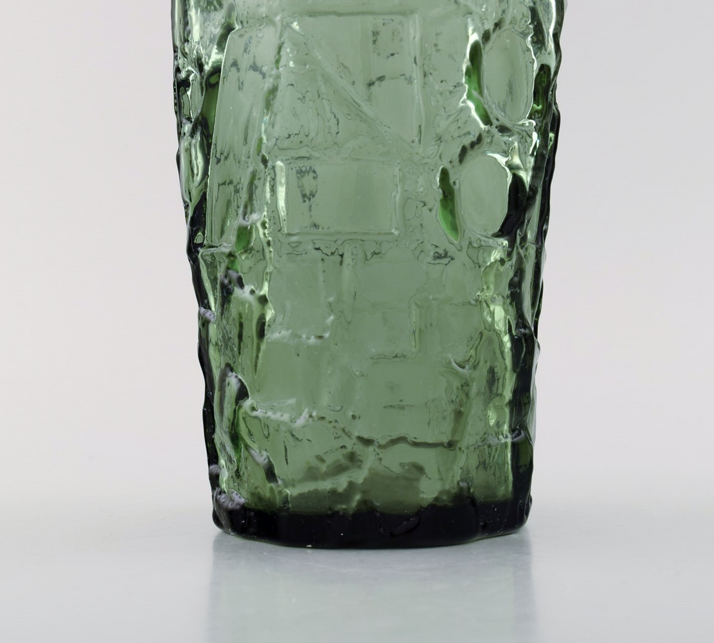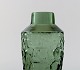 Finsk glaskunstner. Vase i grønt mundblæst kunstglas. Abstrakt motiv. 1970'erne. Måler: 22 x 11 cm. I perfekt stand.