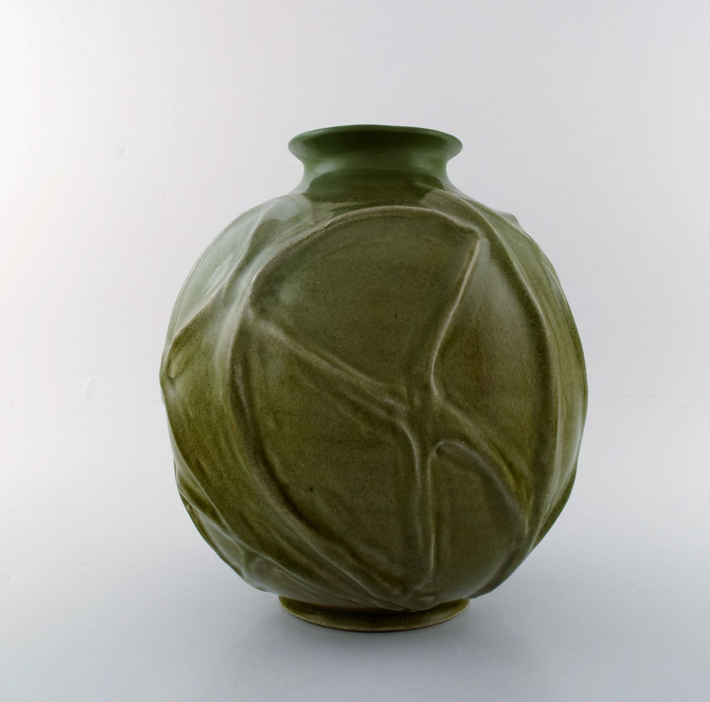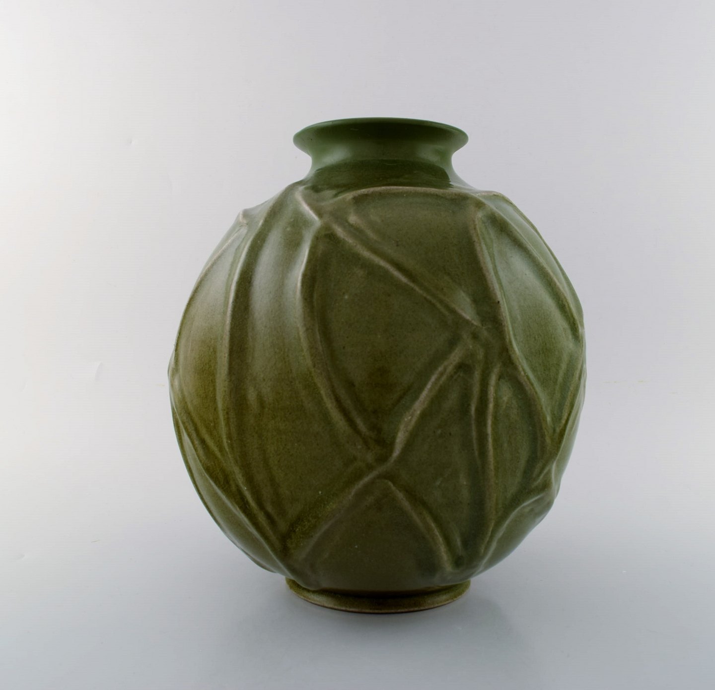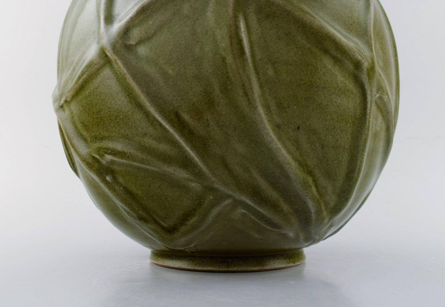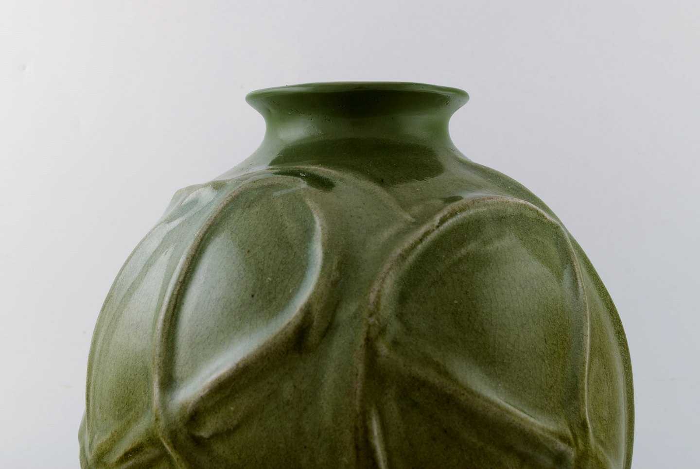 Janna Ryberg for Kähler, HAK. Stor organisk unika keramikvase i olivengrøn glasur. 1960/70'erne.