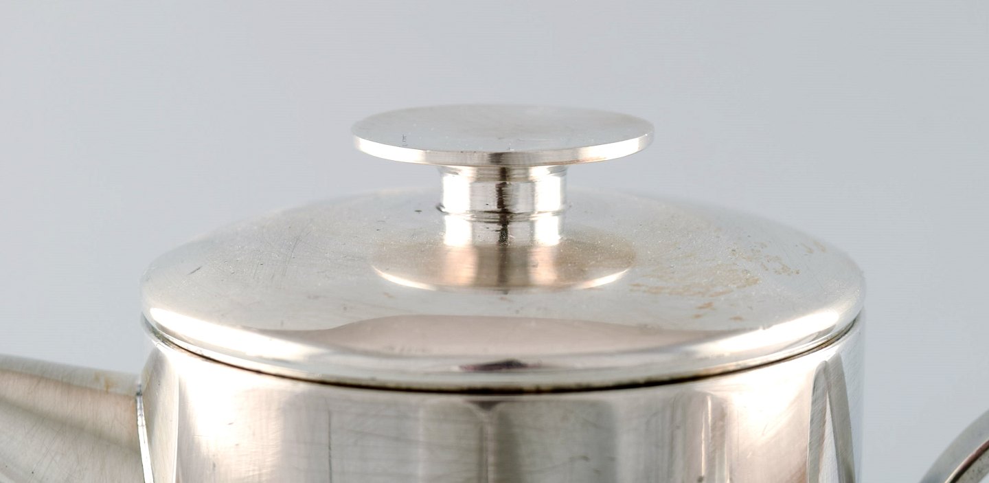 Lino Sabattini (born 1925, 2016) for Christofle. A modernist coffee service in silver-plated metal. Coffee pot, sugar bowl and creamer. Ca. 1960.